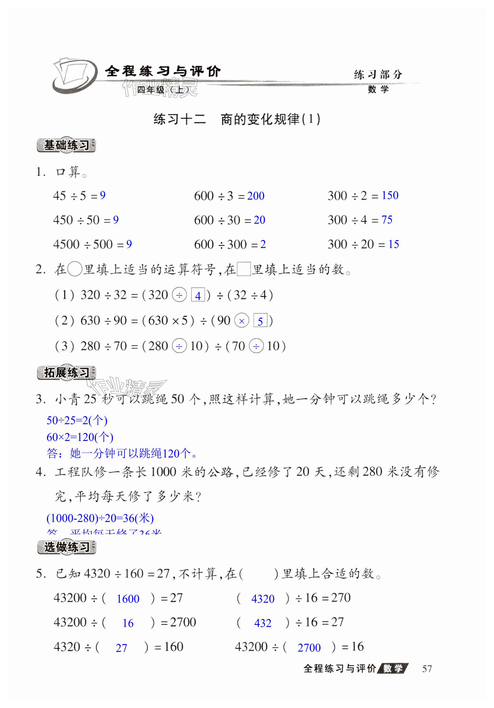 注:目前有些书本章节名称可能整理的还不是很完善,但都是按照顺序排列的,请同学们按照顺序仔细查找。练习册 2024年全程练习与评价四年级数学上册人教版 答案主要是用来给同学们做完题方便对答案用的,请勿直接抄袭。