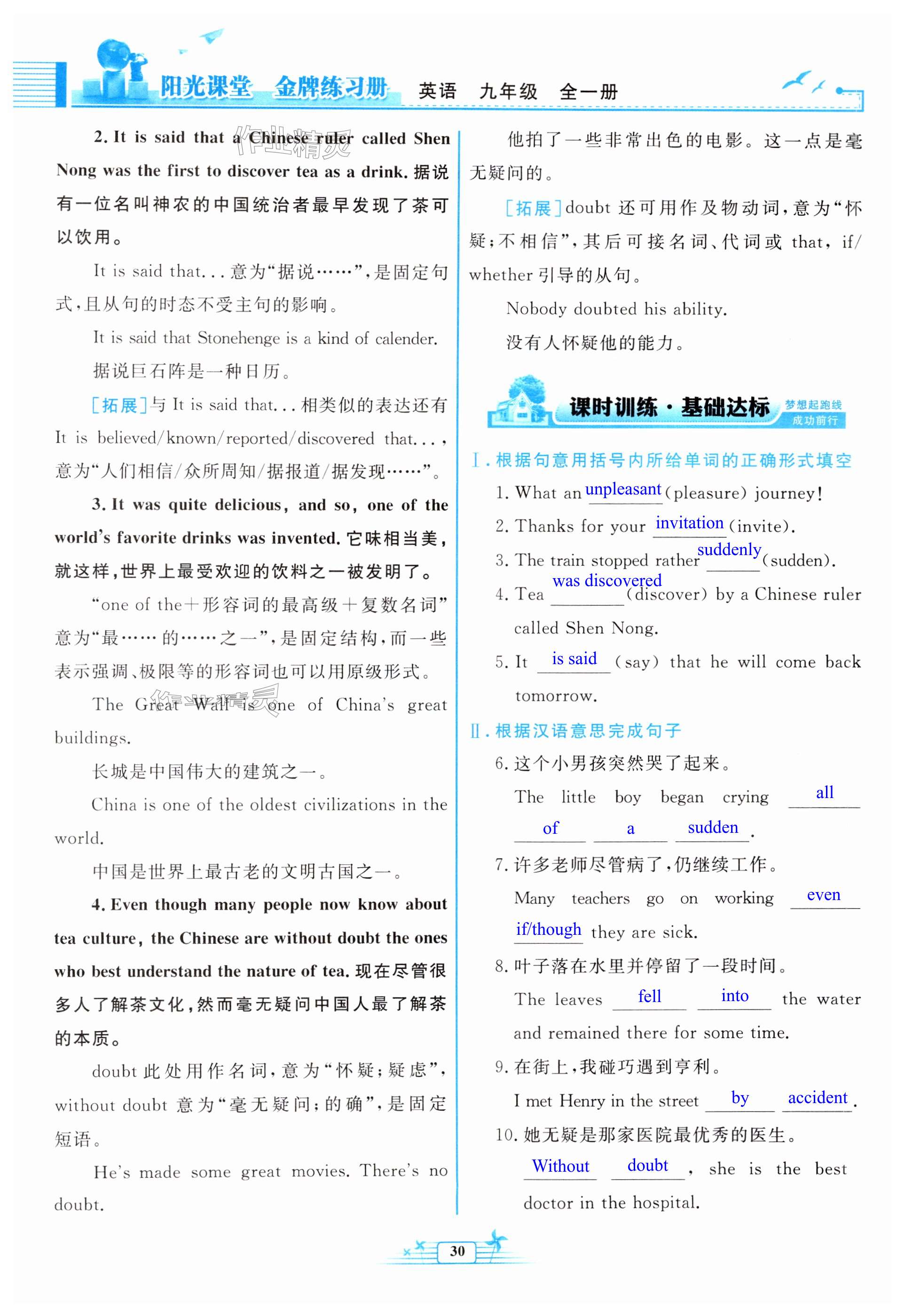 注:目前有些书本章节名称可能整理的还不是很完善,但都是按照顺序排列的,请同学们按照顺序仔细查找。练习册 2024年阳光课堂金牌练习册九年级英语全一册人教版 答案主要是用来给同学们做完题方便对答案用的,请勿直接抄袭。