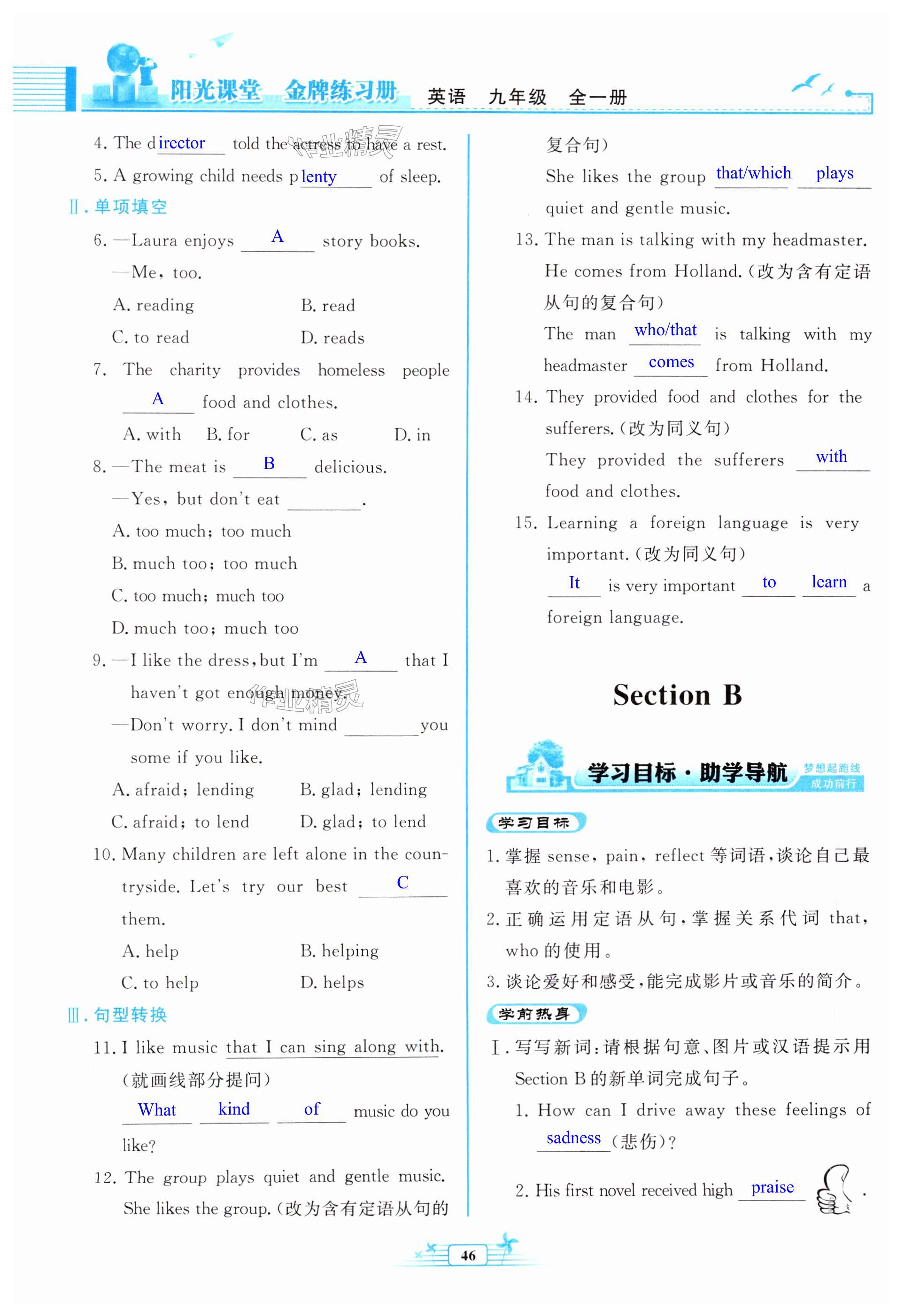 注:目前有些书本章节名称可能整理的还不是很完善,但都是按照顺序排列的,请同学们按照顺序仔细查找。练习册 2024年阳光课堂金牌练习册九年级英语全一册人教版 答案主要是用来给同学们做完题方便对答案用的,请勿直接抄袭。