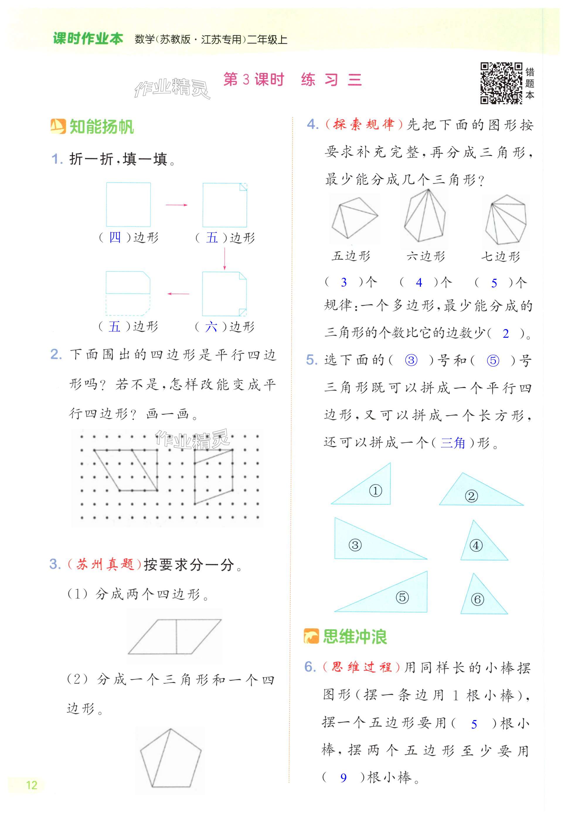 注:目前有些书本章节名称可能整理的还不是很完善,但都是按照顺序排列的,请同学们按照顺序仔细查找。练习册 2024年通成学典课时作业本二年级数学上册苏教版苏州专版 答案主要是用来给同学们做完题方便对答案用的,请勿直接抄袭。