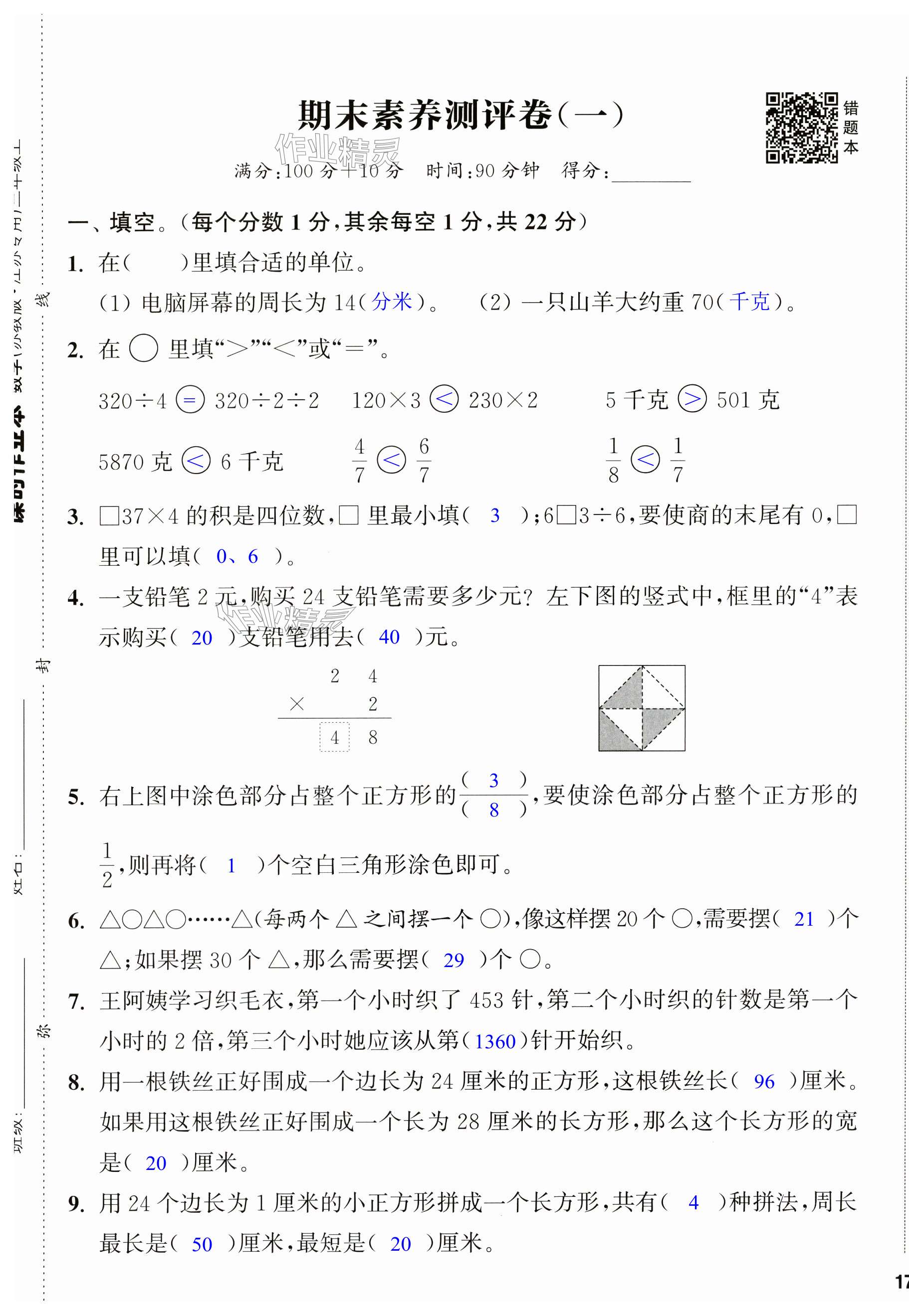 注:目前有些书本章节名称可能整理的还不是很完善,但都是按照顺序排列的,请同学们按照顺序仔细查找。练习册 2024年通成学典课时作业本三年级数学上册苏教版苏州专版 答案主要是用来给同学们做完题方便对答案用的,请勿直接抄袭。