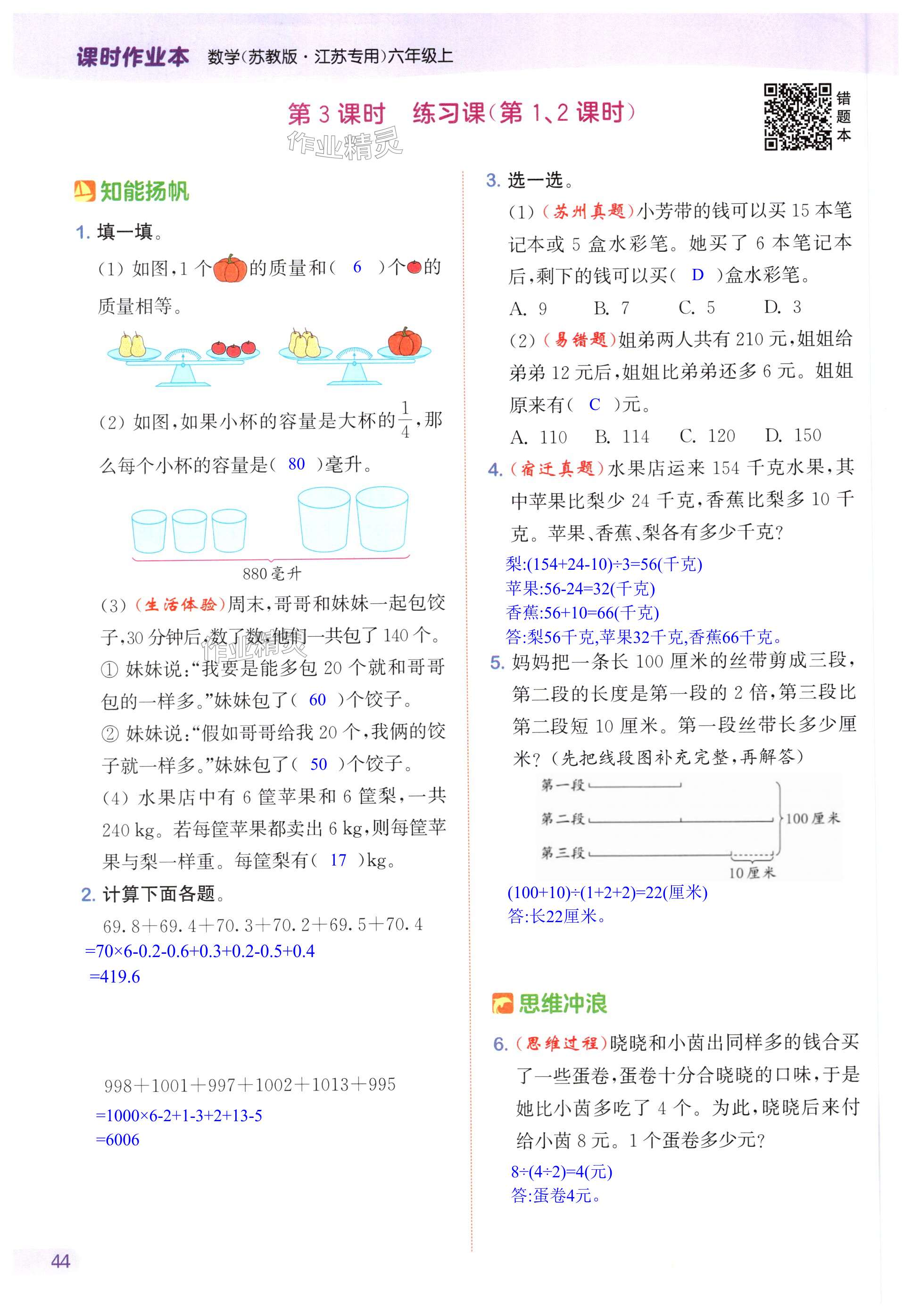 注:目前有些书本章节名称可能整理的还不是很完善,但都是按照顺序排列的,请同学们按照顺序仔细查找。练习册 2024年通成学典课时作业本六年级数学上册苏教版苏州专版 答案主要是用来给同学们做完题方便对答案用的,请勿直接抄袭。