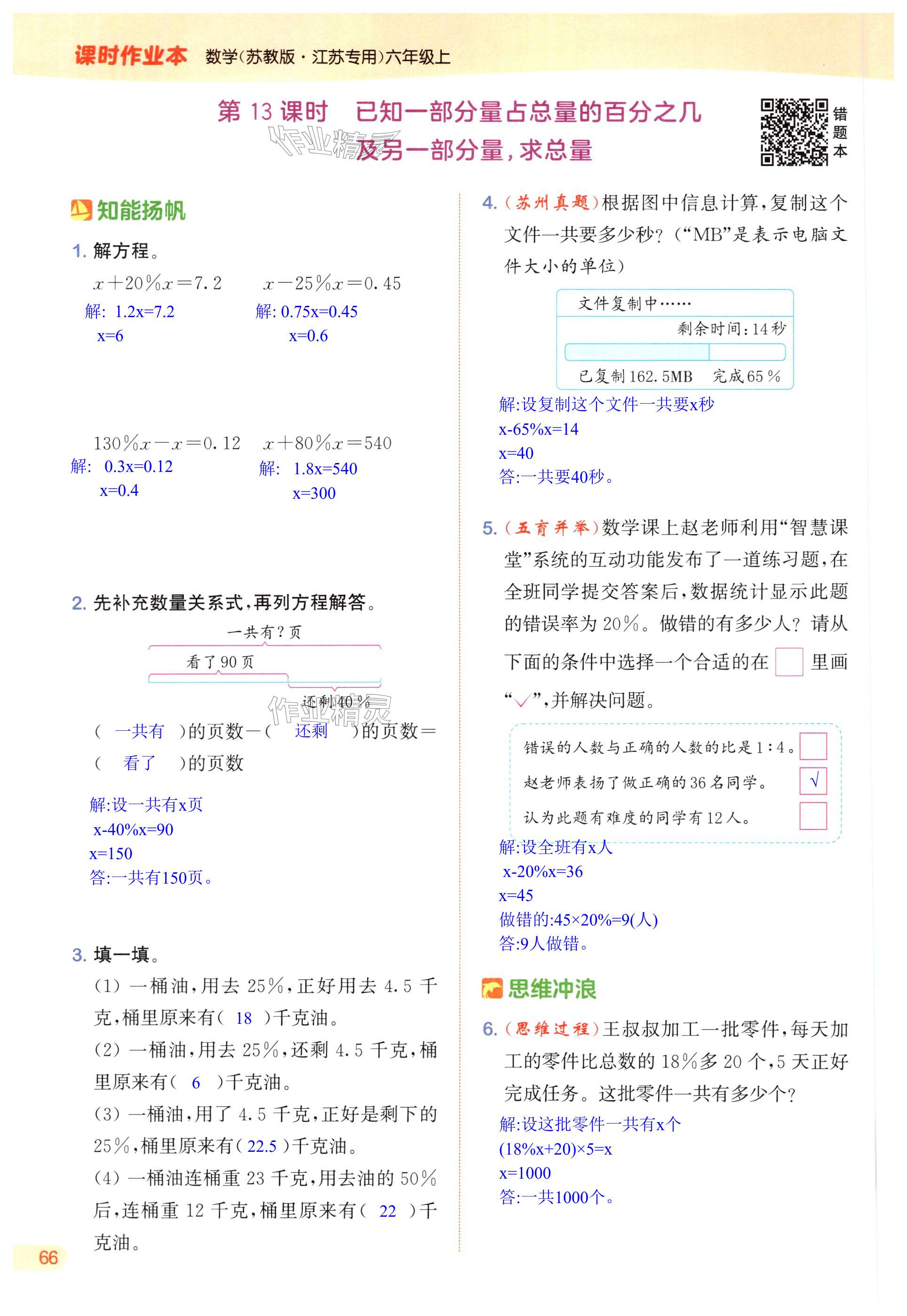 2024年通成学典课时作业本六年级数学上册苏教版苏州专版