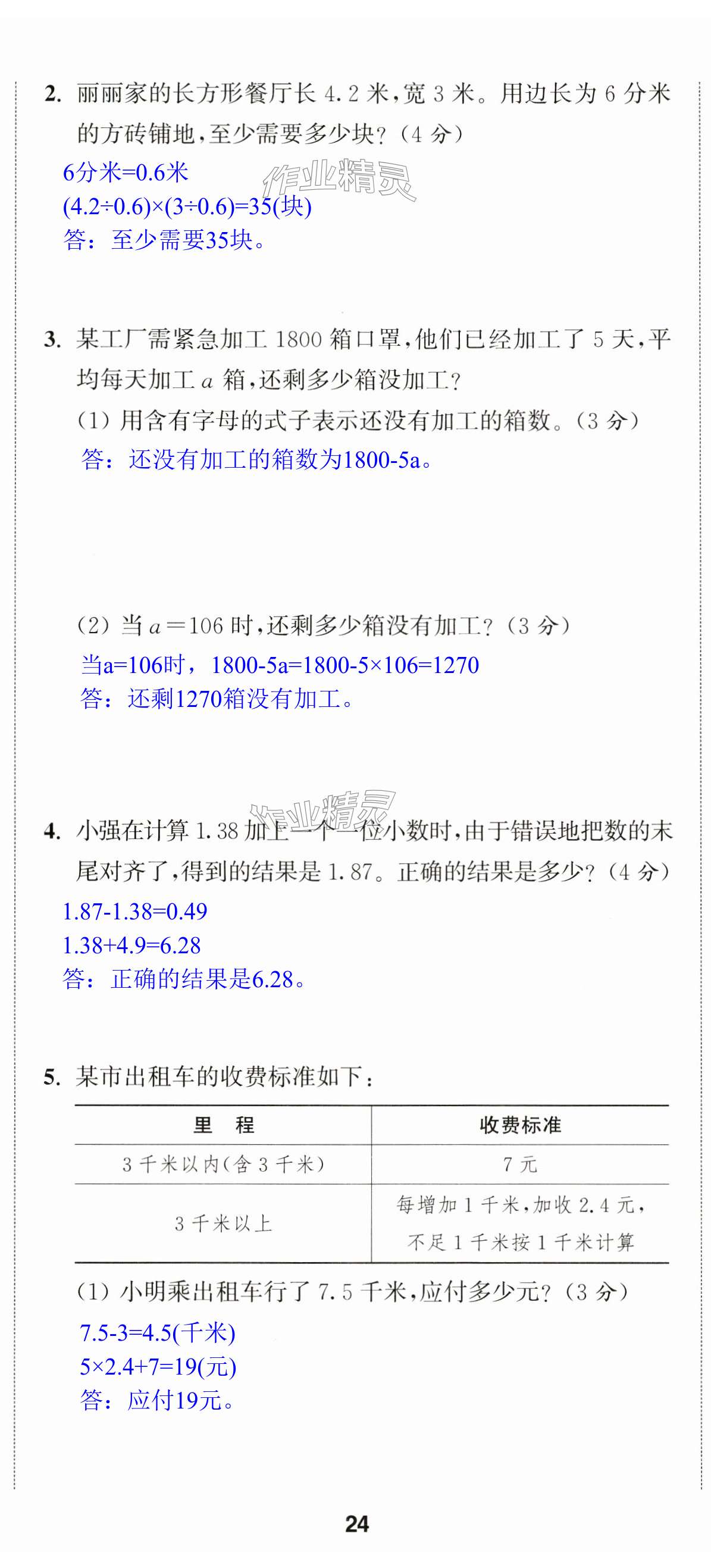 注:目前有些书本章节名称可能整理的还不是很完善,但都是按照顺序排列的,请同学们按照顺序仔细查找。练习册 2024年通成学典课时作业本五年级数学上册苏教版苏州专版 答案主要是用来给同学们做完题方便对答案用的,请勿直接抄袭。