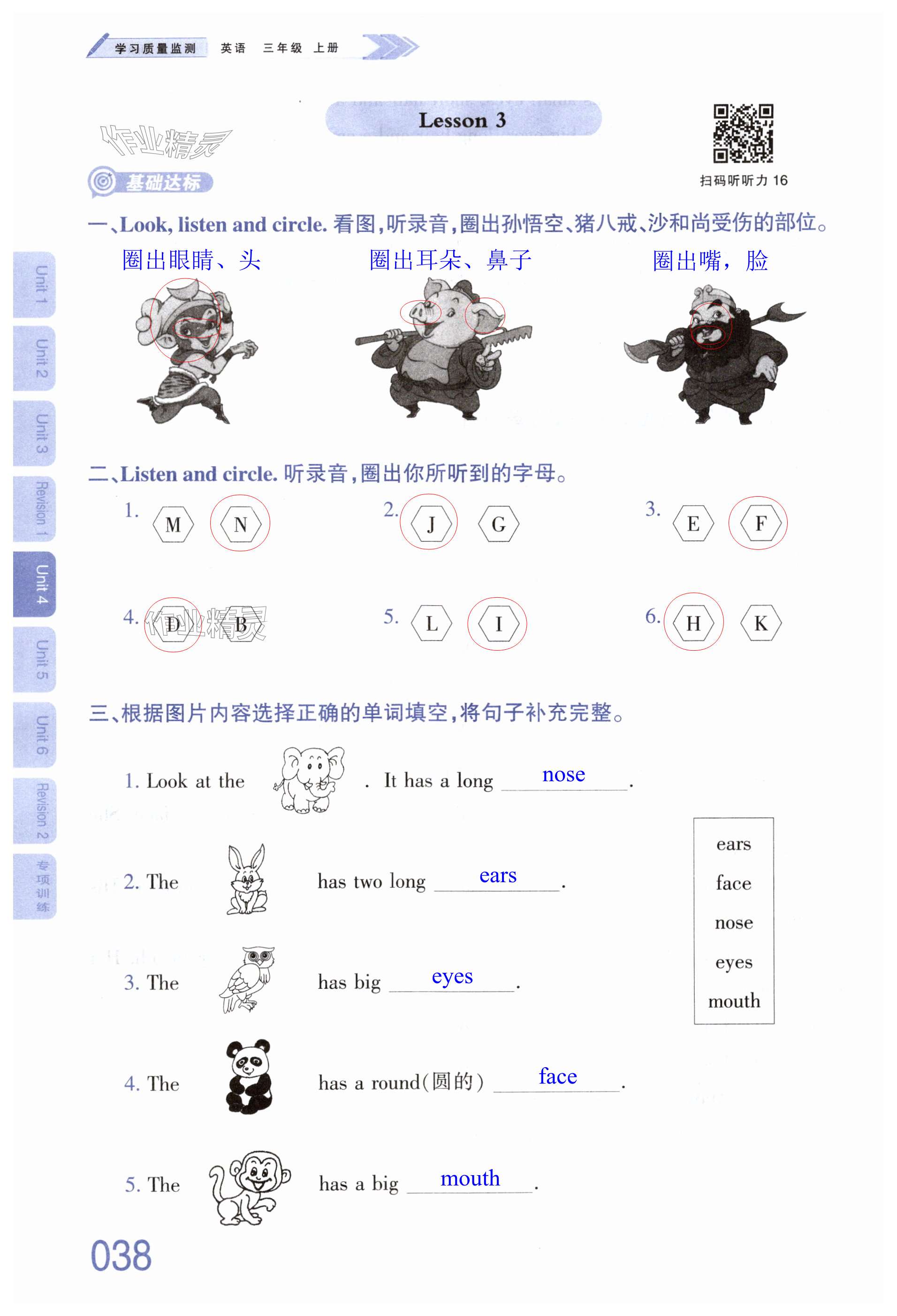 注:目前有些书本章节名称可能整理的还不是很完善,但都是按照顺序排列的,请同学们按照顺序仔细查找。练习册 2024年学习质量监测三年级英语上册人教版 答案主要是用来给同学们做完题方便对答案用的,请勿直接抄袭。