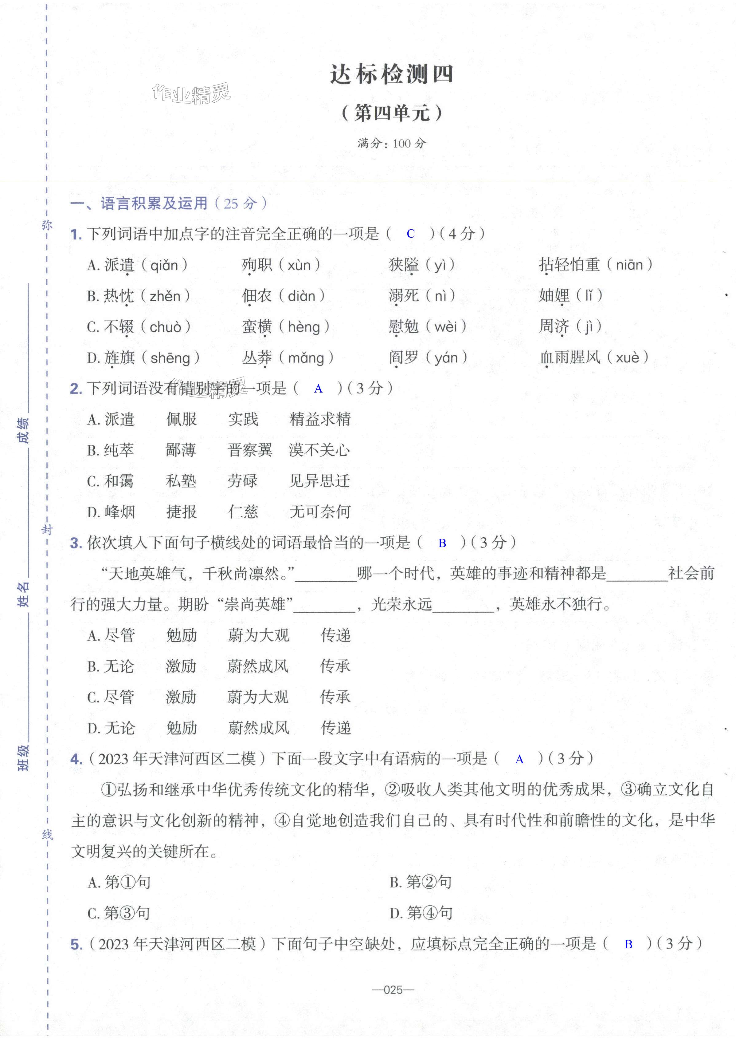 相关练习册答案