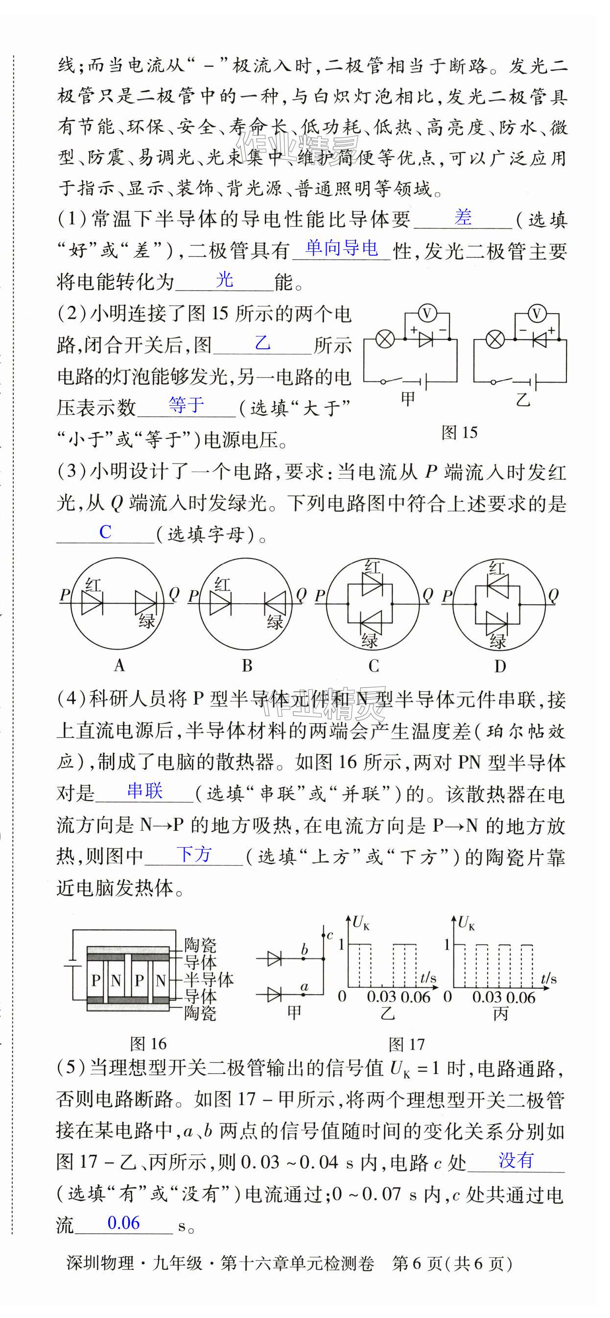 注:目前有些书本章节名称可能整理的还不是很完善,但都是按照顺序排列的,请同学们按照顺序仔细查找。练习册 2024年领跑作业本九年级物理全一册人教版深圳专版 答案主要是用来给同学们做完题方便对答案用的,请勿直接抄袭。