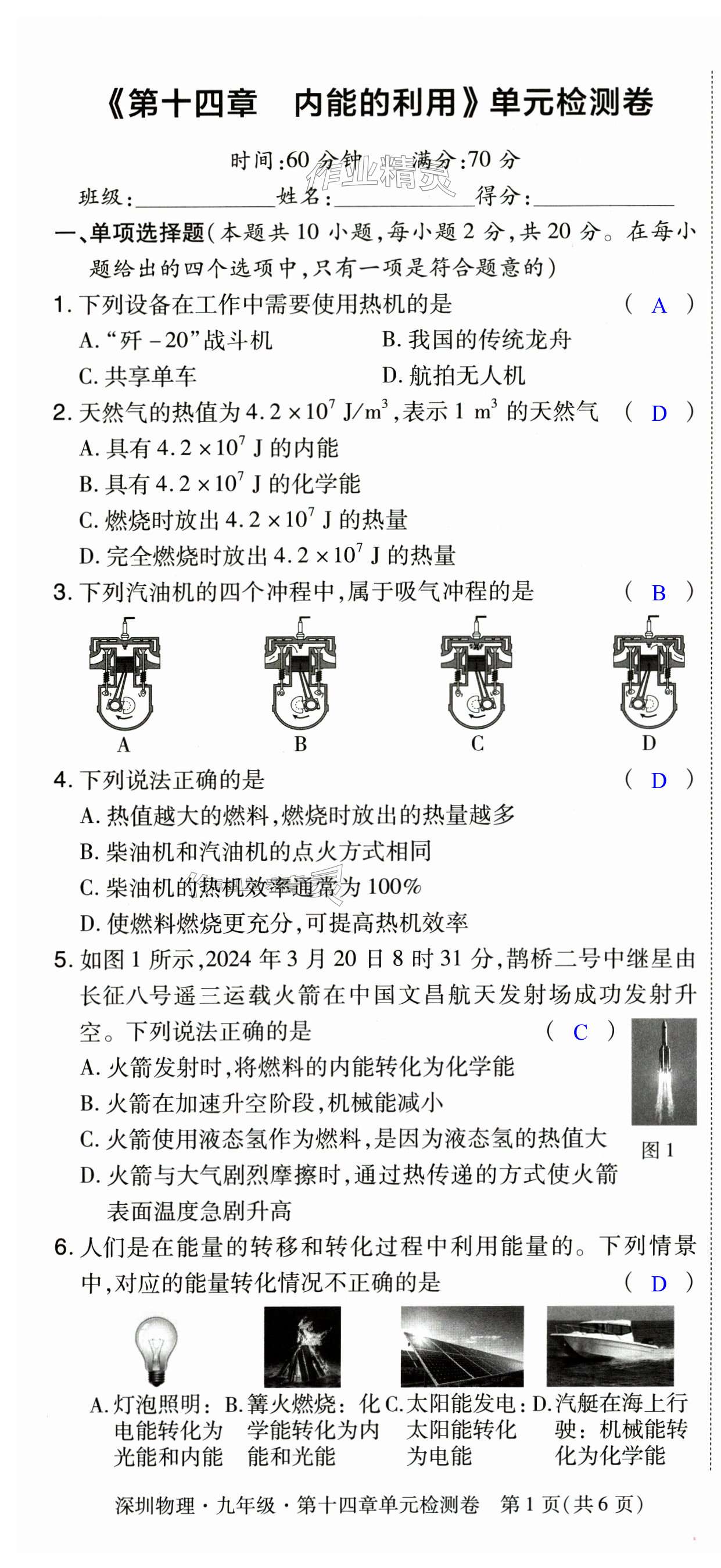 注:目前有些书本章节名称可能整理的还不是很完善,但都是按照顺序排列的,请同学们按照顺序仔细查找。练习册 2024年领跑作业本九年级物理全一册人教版深圳专版 答案主要是用来给同学们做完题方便对答案用的,请勿直接抄袭。