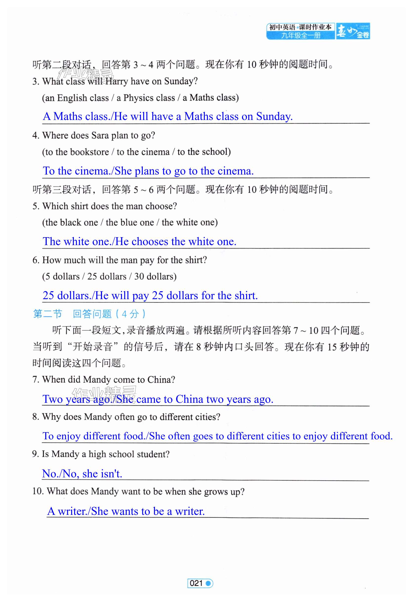 注:目前有些书本章节名称可能整理的还不是很完善,但都是按照顺序排列的,请同学们按照顺序仔细查找。练习册 2024年春如金卷课时作业本九年级英语全一册沪教版 答案主要是用来给同学们做完题方便对答案用的,请勿直接抄袭。