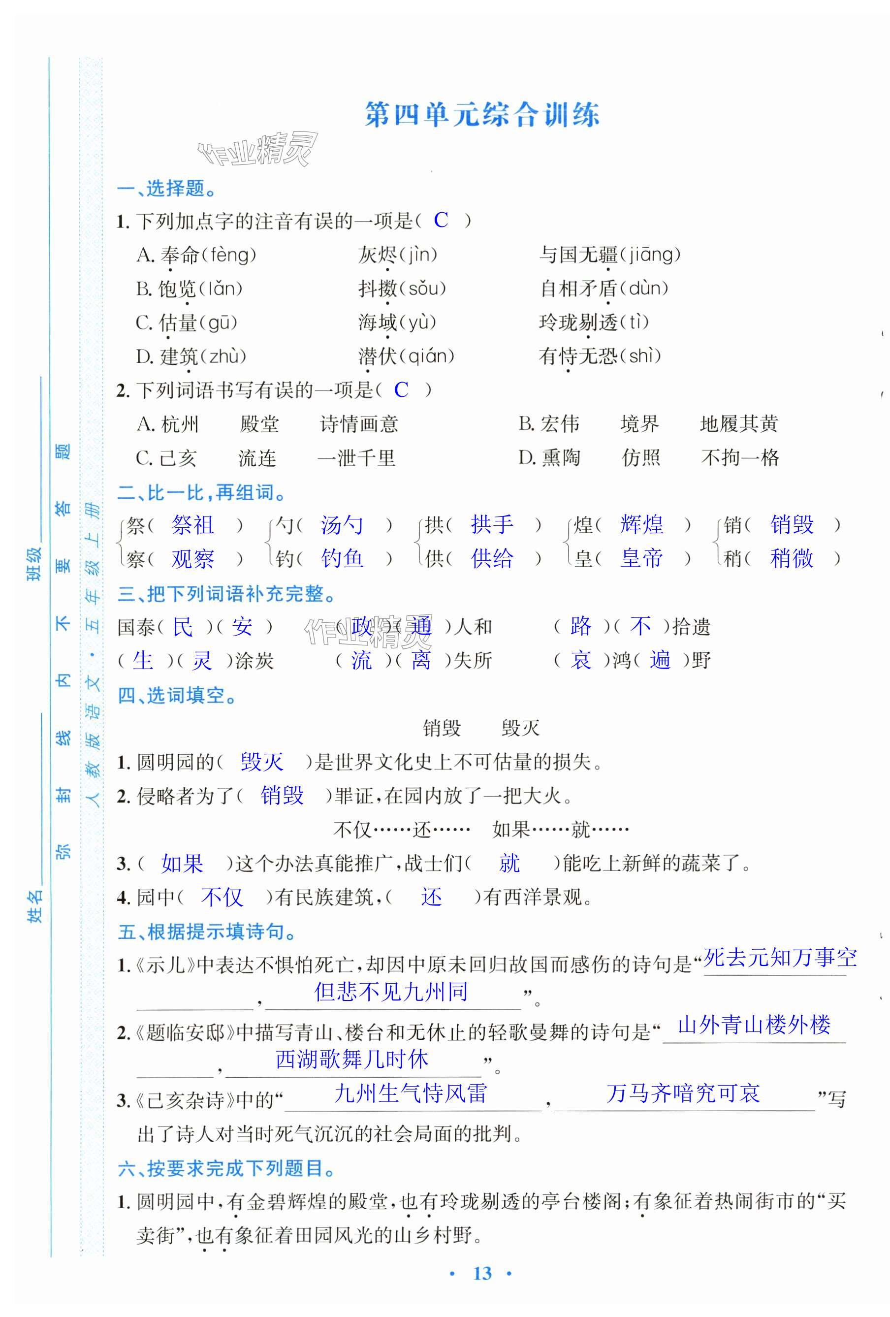 注:目前有些书本章节名称可能整理的还不是很完善,但都是按照顺序排列的,请同学们按照顺序仔细查找。练习册 2024年同步测控优化设计五年级语文上册人教版精编版 答案主要是用来给同学们做完题方便对答案用的,请勿直接抄袭。