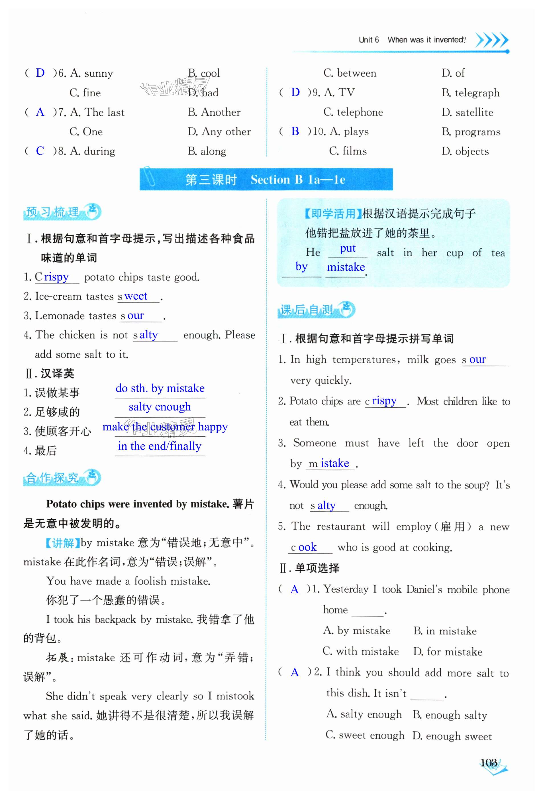 注:目前有些书本章节名称可能整理的还不是很完善,但都是按照顺序排列的,请同学们按照顺序仔细查找。练习册 2024年能力培养与测试九年级英语全一册人教版 答案主要是用来给同学们做完题方便对答案用的,请勿直接抄袭。
