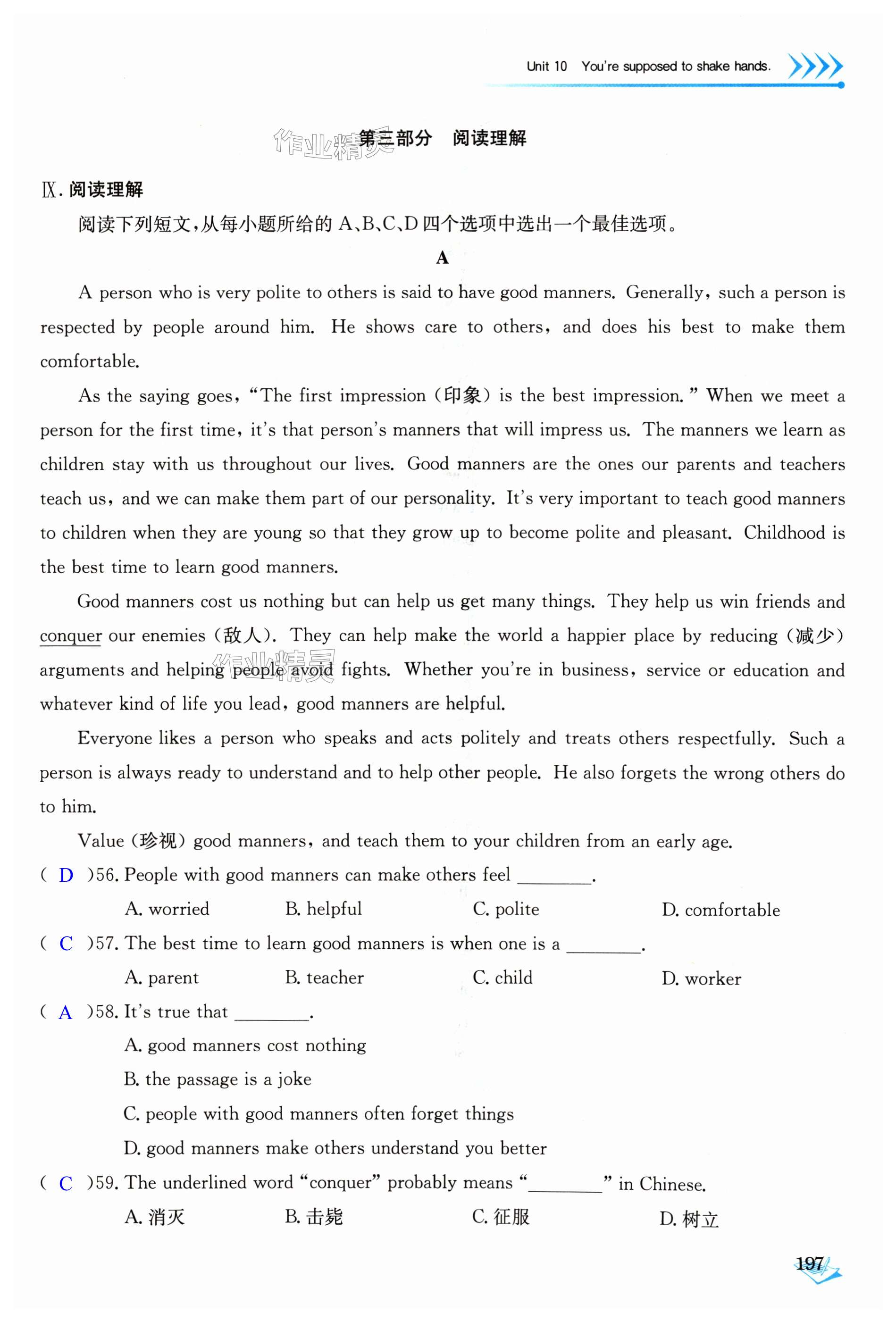 注:目前有些书本章节名称可能整理的还不是很完善,但都是按照顺序排列的,请同学们按照顺序仔细查找。练习册 2024年能力培养与测试九年级英语全一册人教版 答案主要是用来给同学们做完题方便对答案用的,请勿直接抄袭。