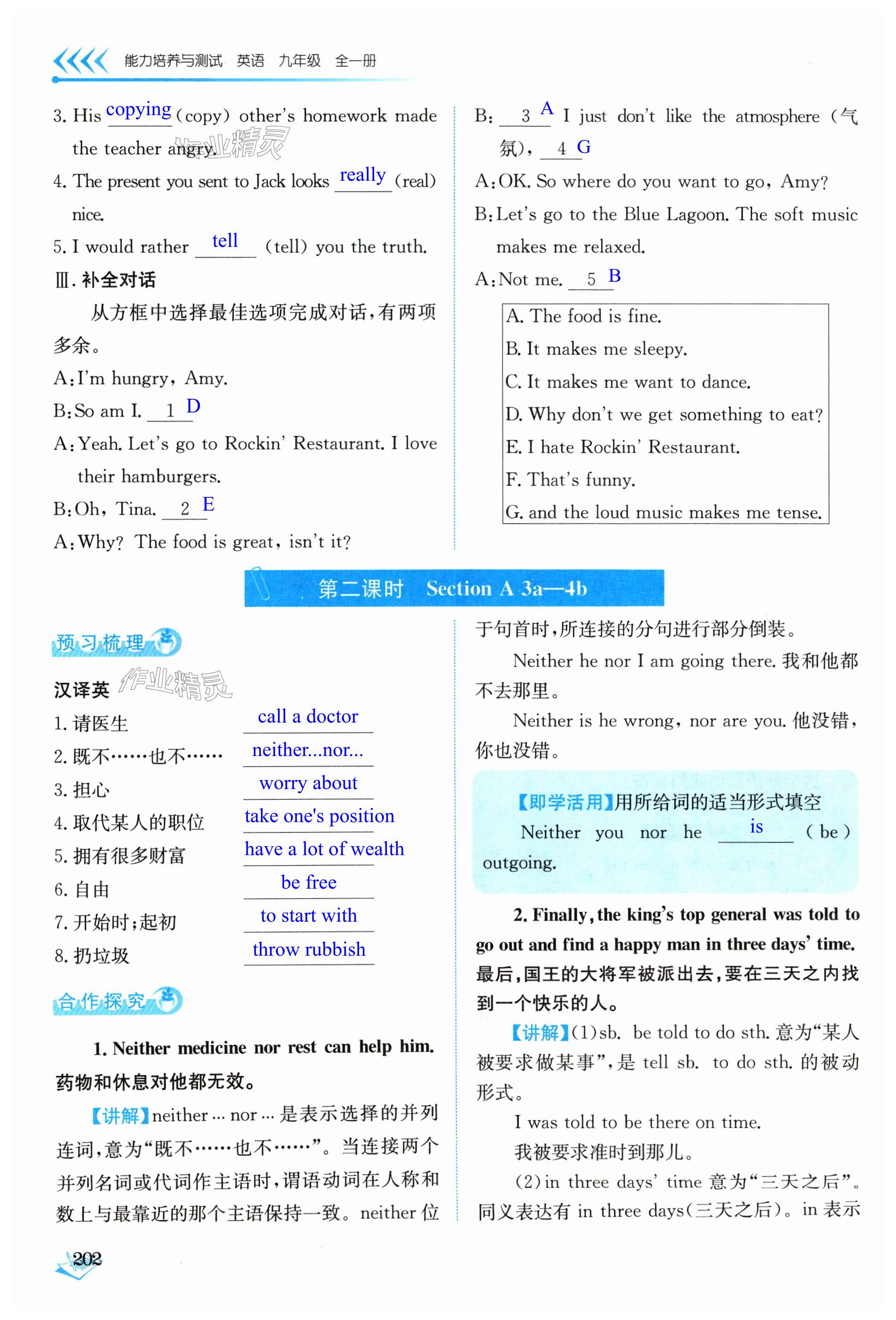 注:目前有些书本章节名称可能整理的还不是很完善,但都是按照顺序排列的,请同学们按照顺序仔细查找。练习册 2024年能力培养与测试九年级英语全一册人教版 答案主要是用来给同学们做完题方便对答案用的,请勿直接抄袭。