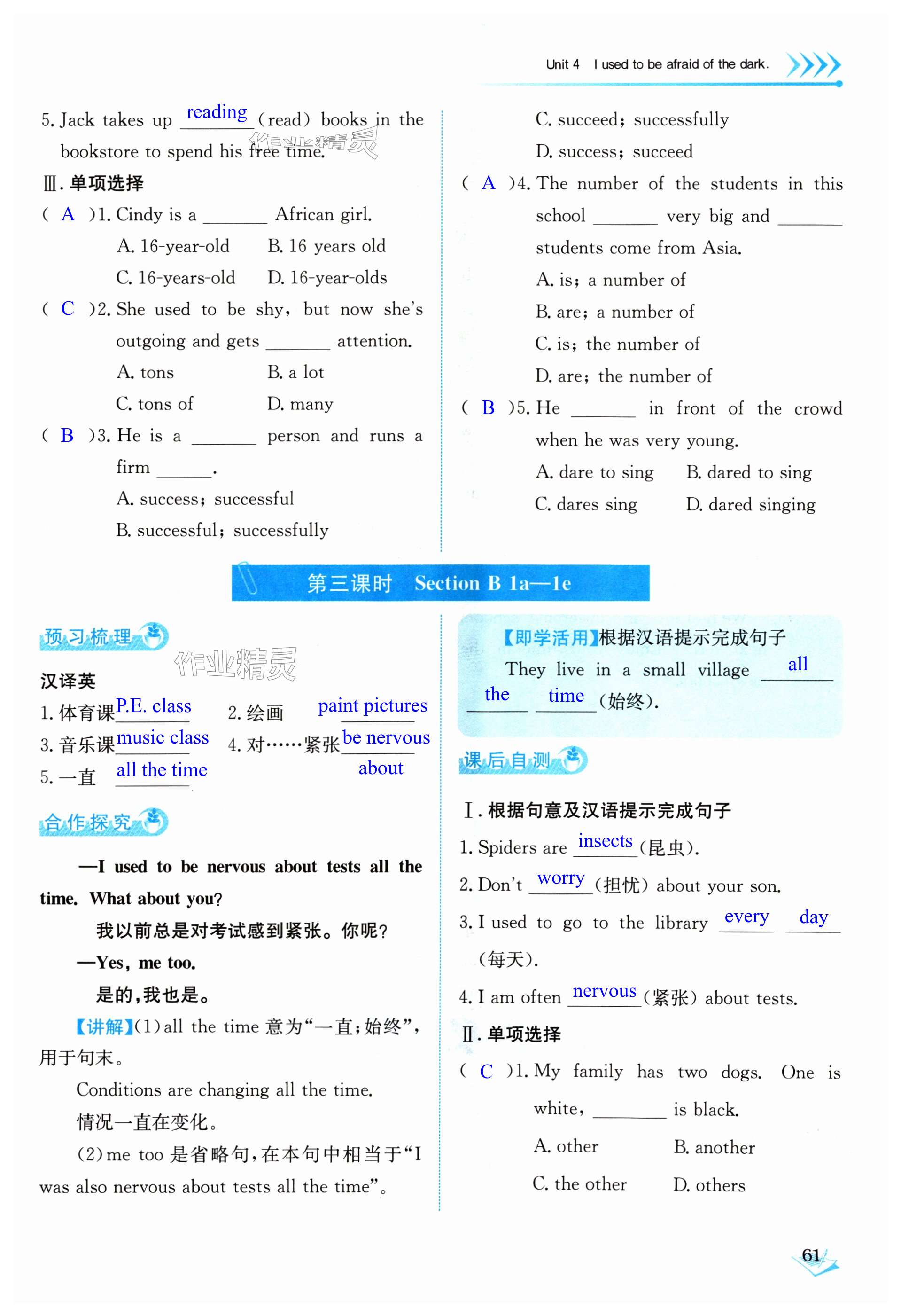 注:目前有些书本章节名称可能整理的还不是很完善,但都是按照顺序排列的,请同学们按照顺序仔细查找。练习册 2024年能力培养与测试九年级英语全一册人教版 答案主要是用来给同学们做完题方便对答案用的,请勿直接抄袭。