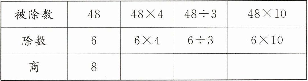 | 被除数 | 48 | $48×4$ | $48÷3$ | $48×10$ |
