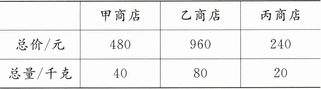 5 下面是三家商店一天卖出苹果的总价和总量,他们卖出的苹果单价相同吗?你是怎么想的?