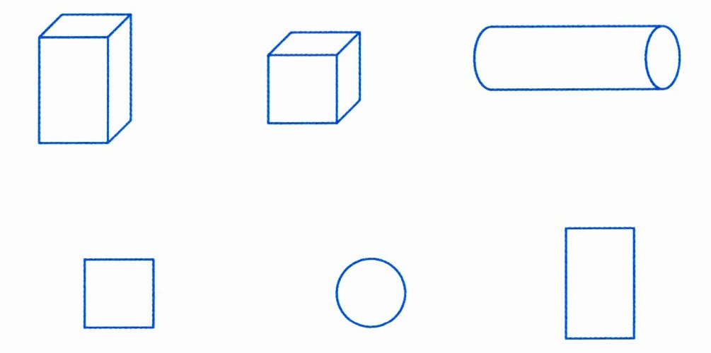 1. 分别从右面看下面的每个物体,把看到的图形与对应的物体用线连一连。