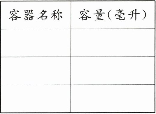 |容器名称|容量(毫升)|