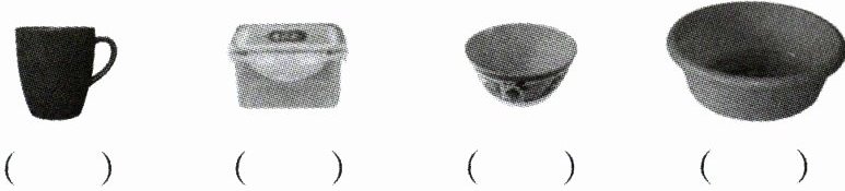 2 要盛 4 升水,选哪种容器比较合适?请在它下面的括号里画“√”。