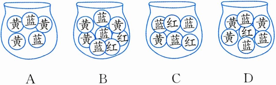2 在口袋里放黄色和白色的乒乓球共 8 个,每次从中任意摸出 1 个乒乓球,摸后放回。要符合下面的要求可以怎样放?