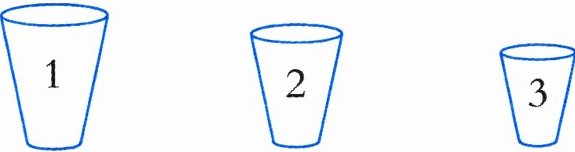 有 1 号、2 号、3 号三个杯子,容量分别为 700 毫升、500 毫升、300 毫升(如下图)。只用这三个杯子,你能量出 100 毫升的水吗?你能说说你是怎么量的吗?