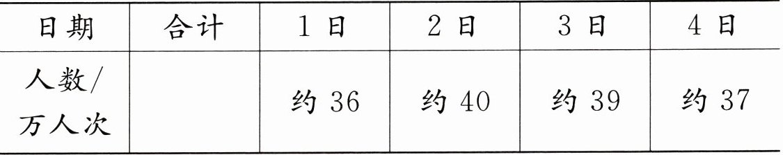 |人数/万人次| |约$36$|约$40$|约$39$|约$37$|