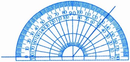 (1)上面这个角,从( )边 $0^{\circ}$ 刻度线看起,是( )$^{\circ}$。