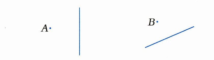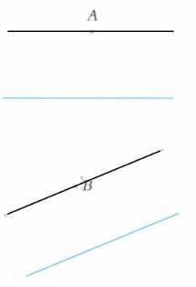 4 经过点$A和点B$分别画出已知直线的平行线。