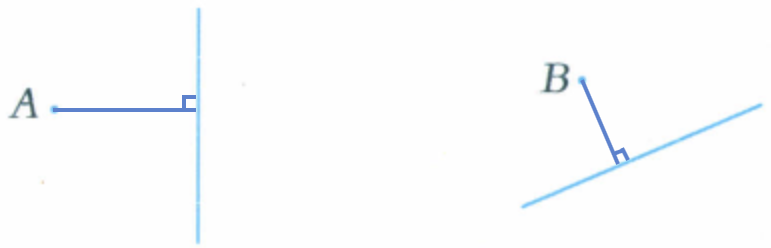 3 画出点$A和点B$到已知直线的垂直线段,分别量出点$A和点B$到对应直线的距离。