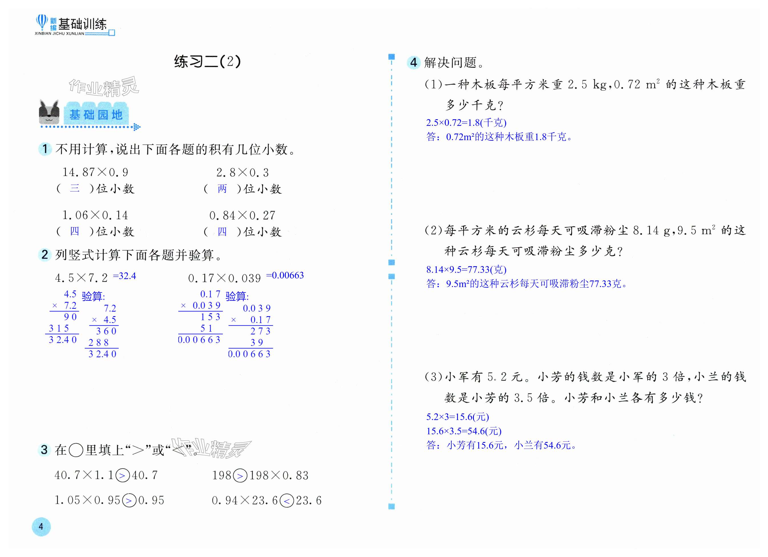 注:目前有些书本章节名称可能整理的还不是很完善,但都是按照顺序排列的,请同学们按照顺序仔细查找。练习册 2024年新编基础训练五年级数学上册人教版 答案主要是用来给同学们做完题方便对答案用的,请勿直接抄袭。