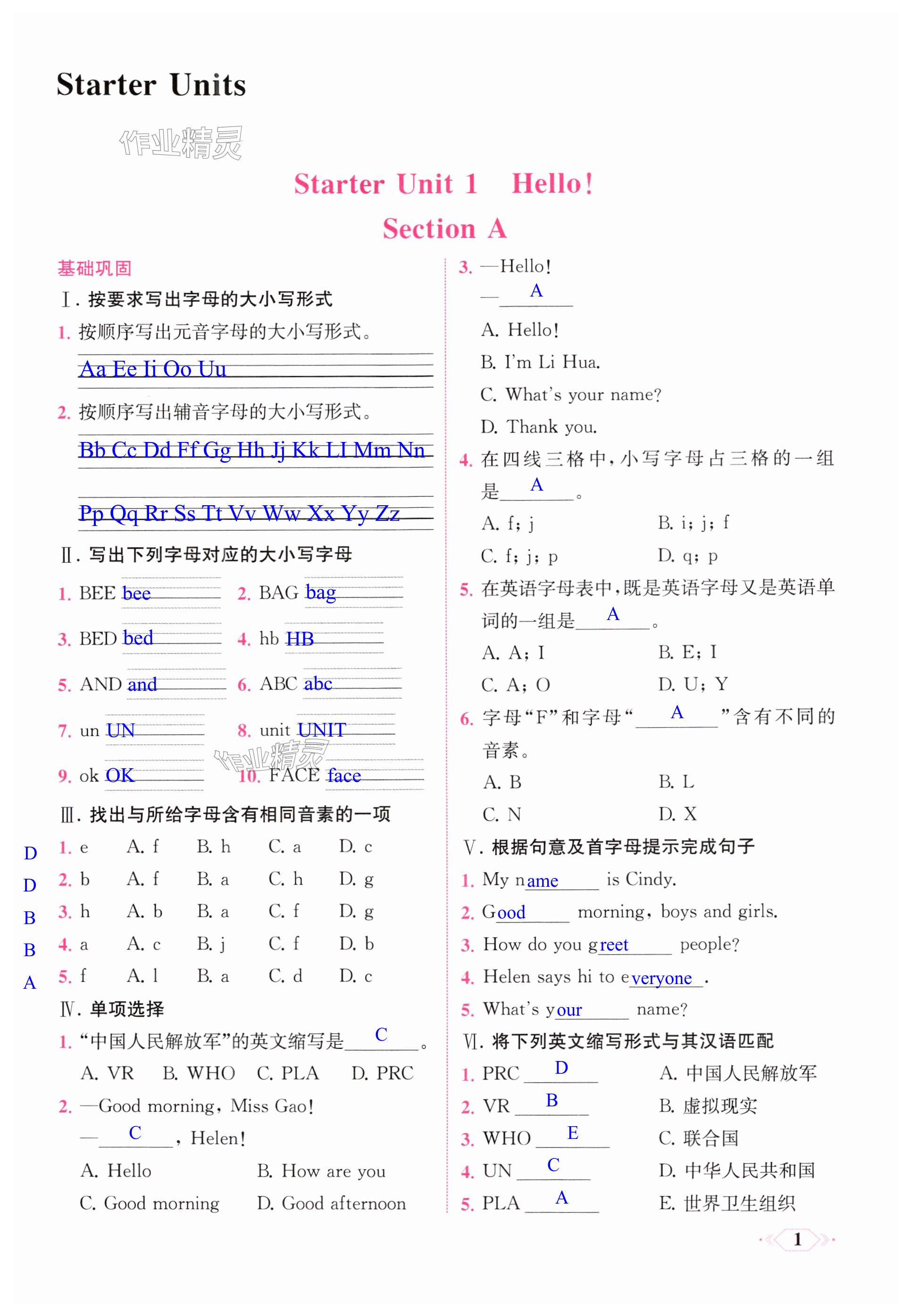 注:目前有些书本章节名称可能整理的还不是很完善,但都是按照顺序排列的,请同学们按照顺序仔细查找。练习册 2024年课时练人民教育出版社七年级英语上册人教版 答案主要是用来给同学们做完题方便对答案用的,请勿直接抄袭。