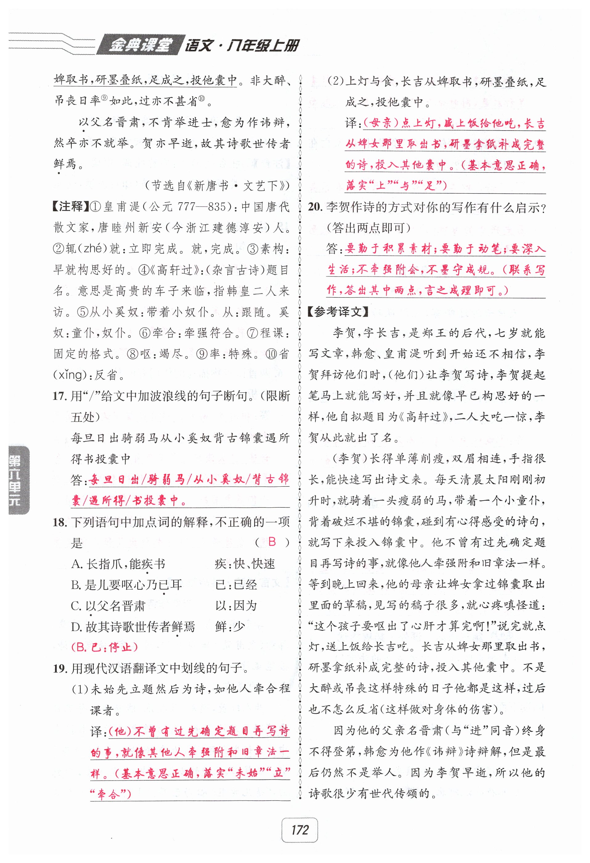 注:目前有些书本章节名称可能整理的还不是很完善,但都是按照顺序排列的,请同学们按照顺序仔细查找。练习册 2024年名校金典课堂八年级语文上册人教版成都专版 答案主要是用来给同学们做完题方便对答案用的,请勿直接抄袭。