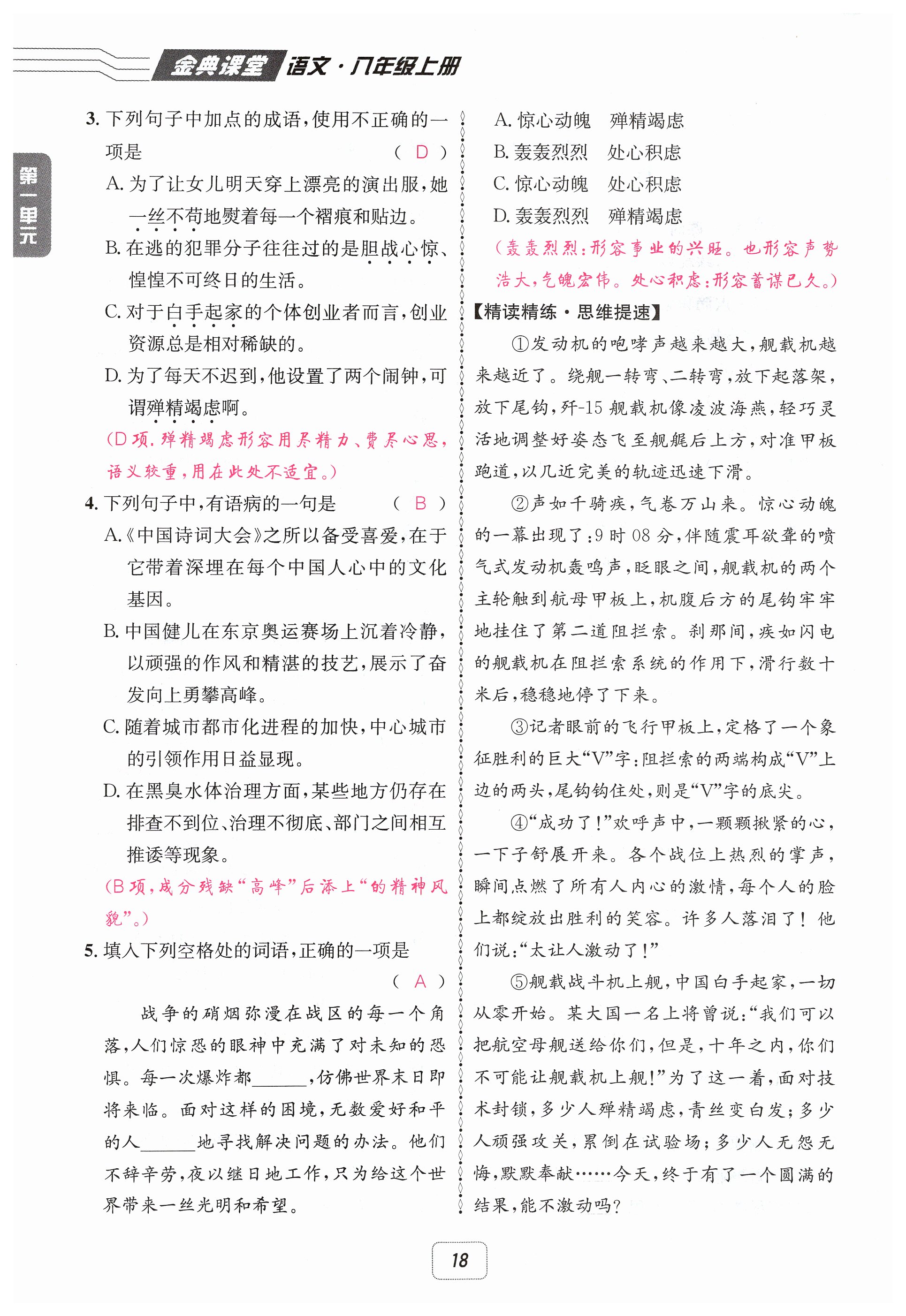 注:目前有些书本章节名称可能整理的还不是很完善,但都是按照顺序排列的,请同学们按照顺序仔细查找。练习册 2024年名校金典课堂八年级语文上册人教版成都专版 答案主要是用来给同学们做完题方便对答案用的,请勿直接抄袭。