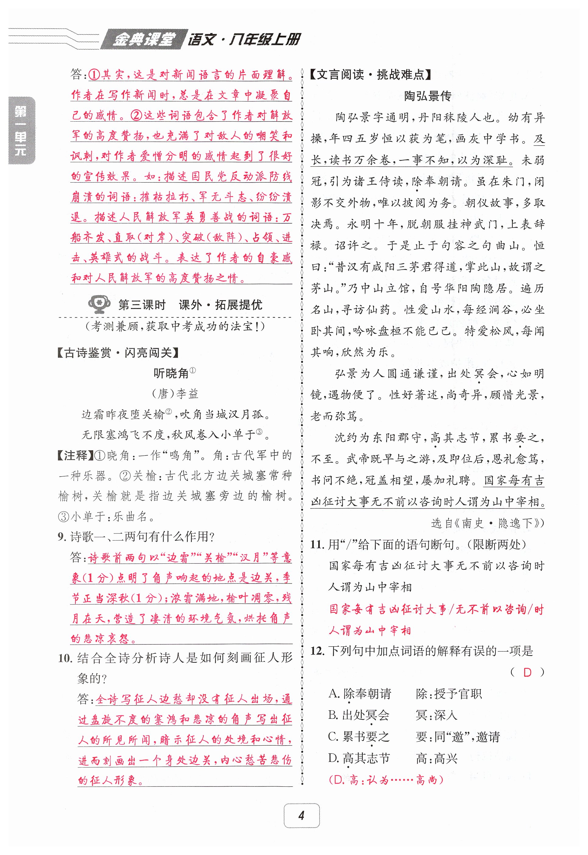 2024年名校金典课堂八年级语文上册人教版成都专版