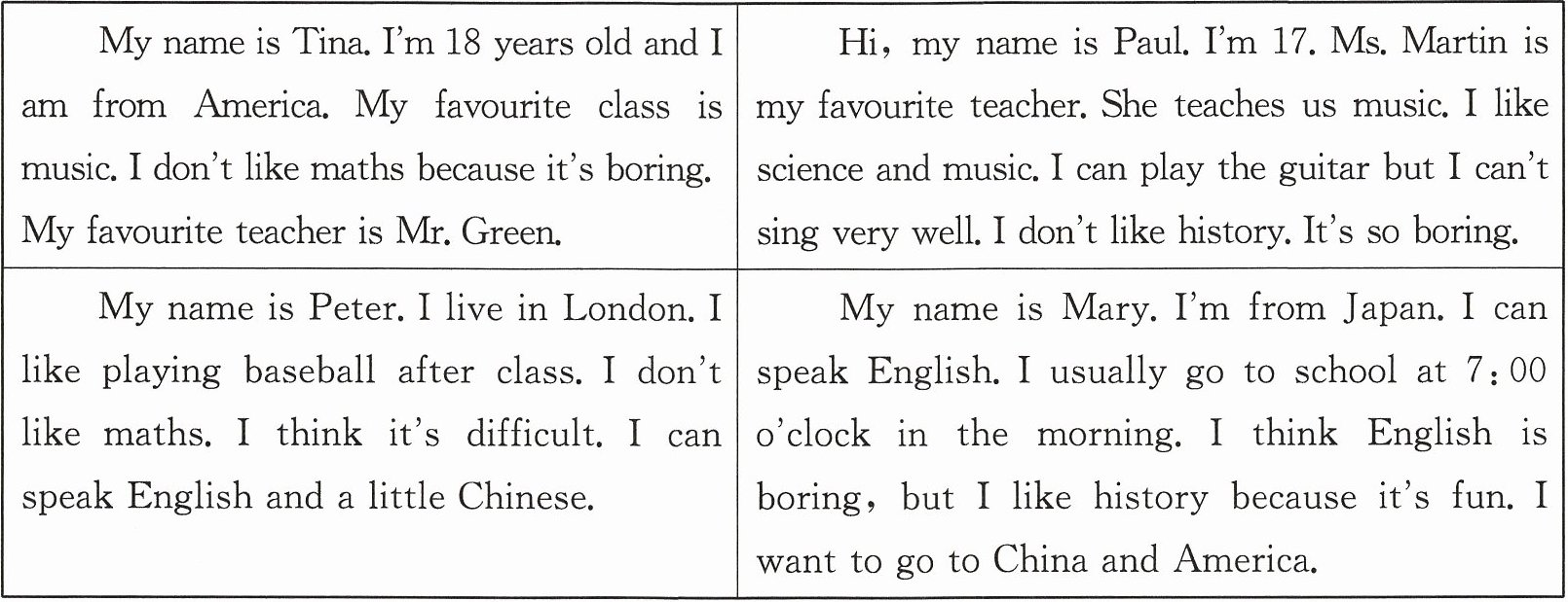 ( )5. What can we get from the four passages?