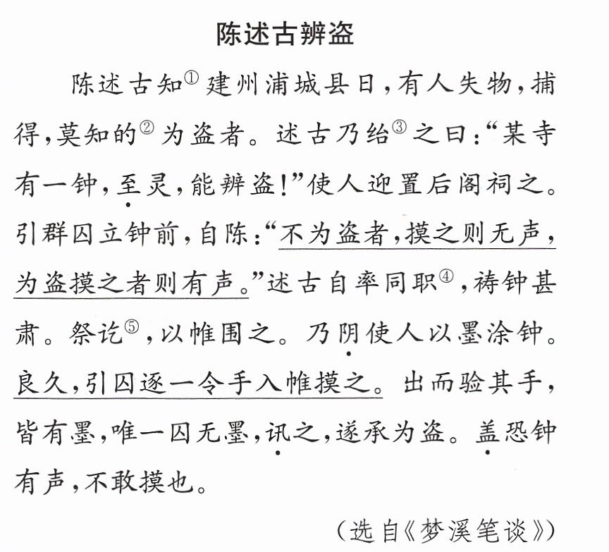 陈述古是一个聪明睿智的人。他巧妙地抓住了小偷做贼心虚的心理,设计让盗贼自己露出了马脚。