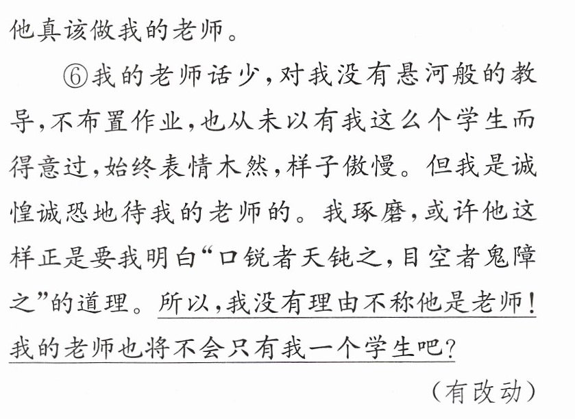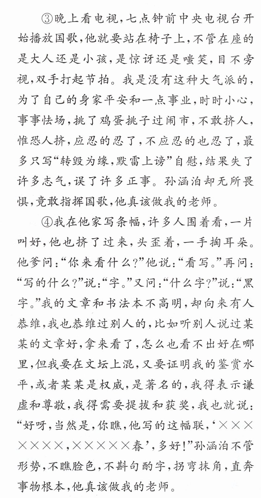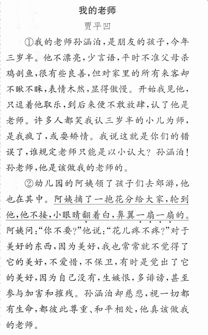 13.“我”为什么认为三岁半的孩子孙涵泊该是自己的老师?请结合全文分析作答。