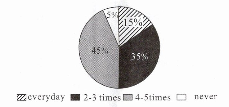 Last week, our school made a survey about students' reading habits. Here are the results. Forty-five percent of the students read books four or five times a week. Thirty-five percent of them read books two or three times a day. We are happy to find that fifteen percent of them read books every day. And only five percent of them never read books. I think students should read more books so that they can learn more.