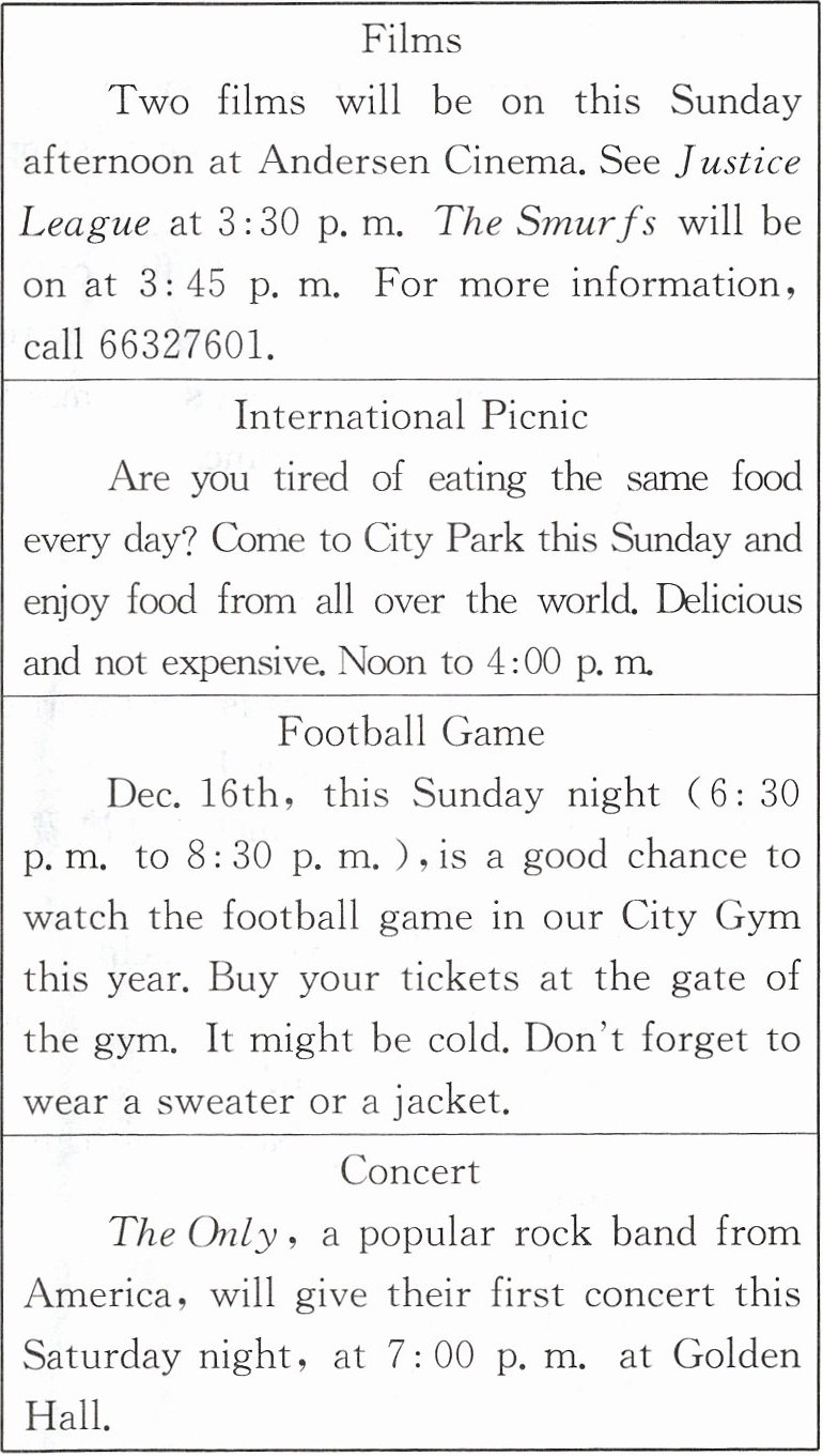 ) 5. After reading these notices,we don't know where to go to join in these activities.