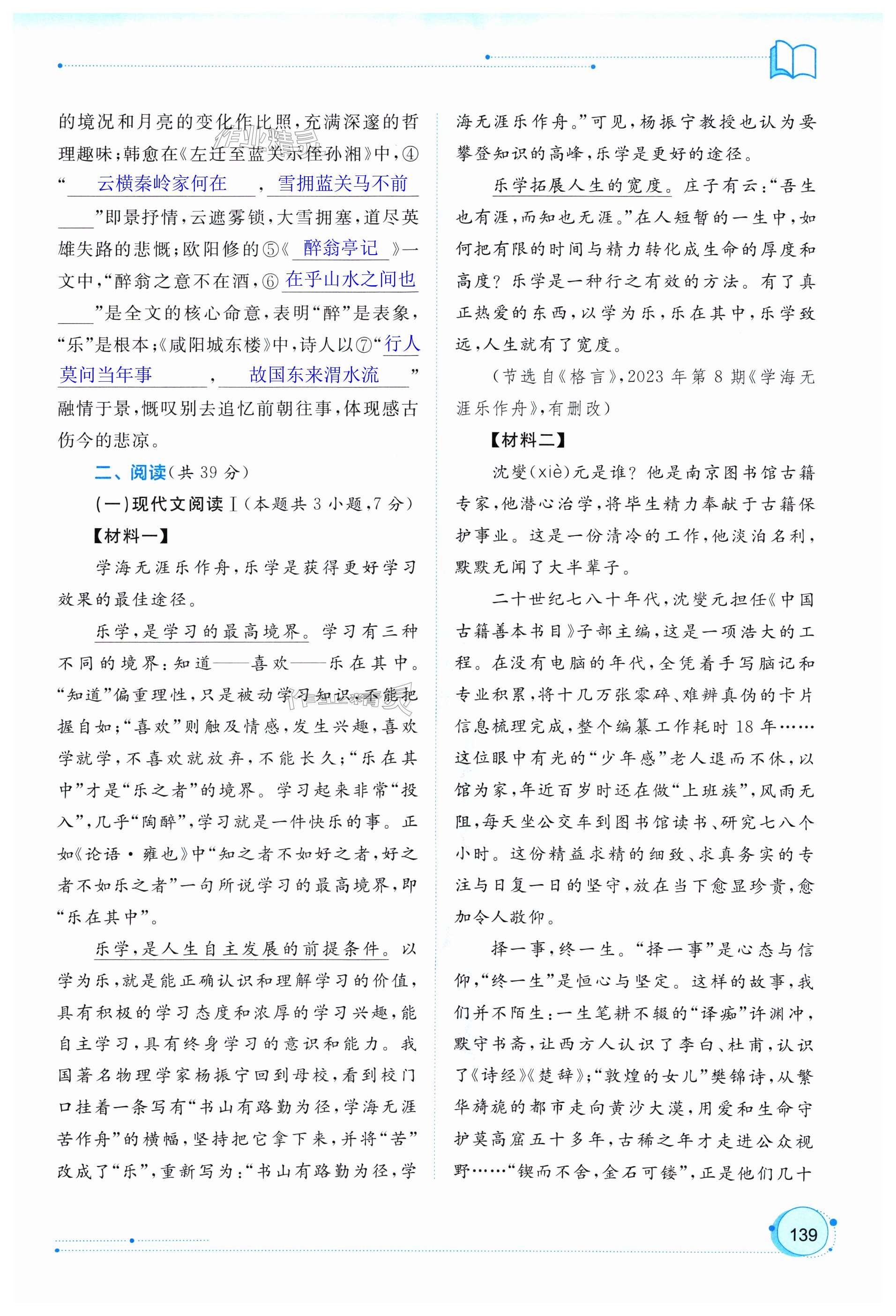 注:目前有些书本章节名称可能整理的还不是很完善,但都是按照顺序排列的,请同学们按照顺序仔细查找。练习册 2024年新课程学习与测评同步学习九年级语文全一册人教版 答案主要是用来给同学们做完题方便对答案用的,请勿直接抄袭。