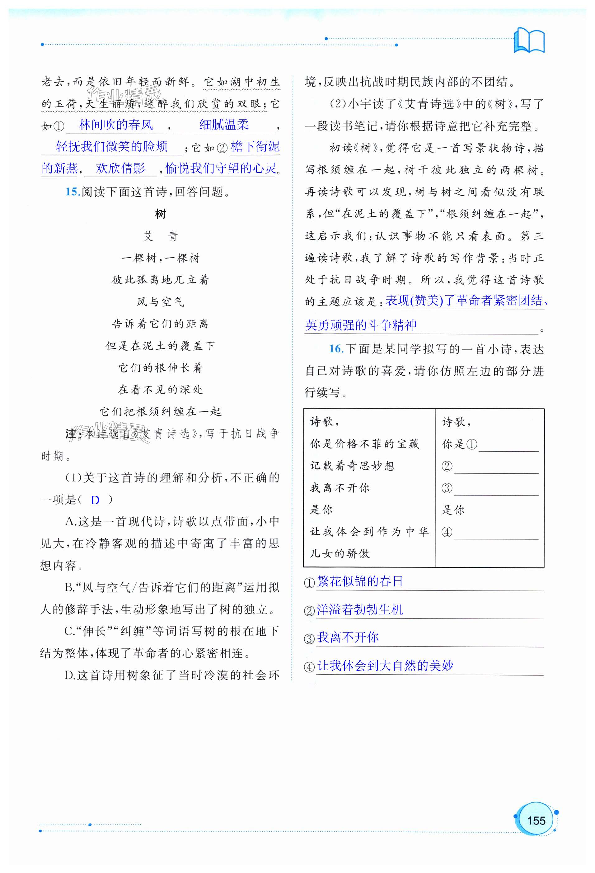 注:目前有些书本章节名称可能整理的还不是很完善,但都是按照顺序排列的,请同学们按照顺序仔细查找。练习册 2024年新课程学习与测评同步学习九年级语文全一册人教版 答案主要是用来给同学们做完题方便对答案用的,请勿直接抄袭。