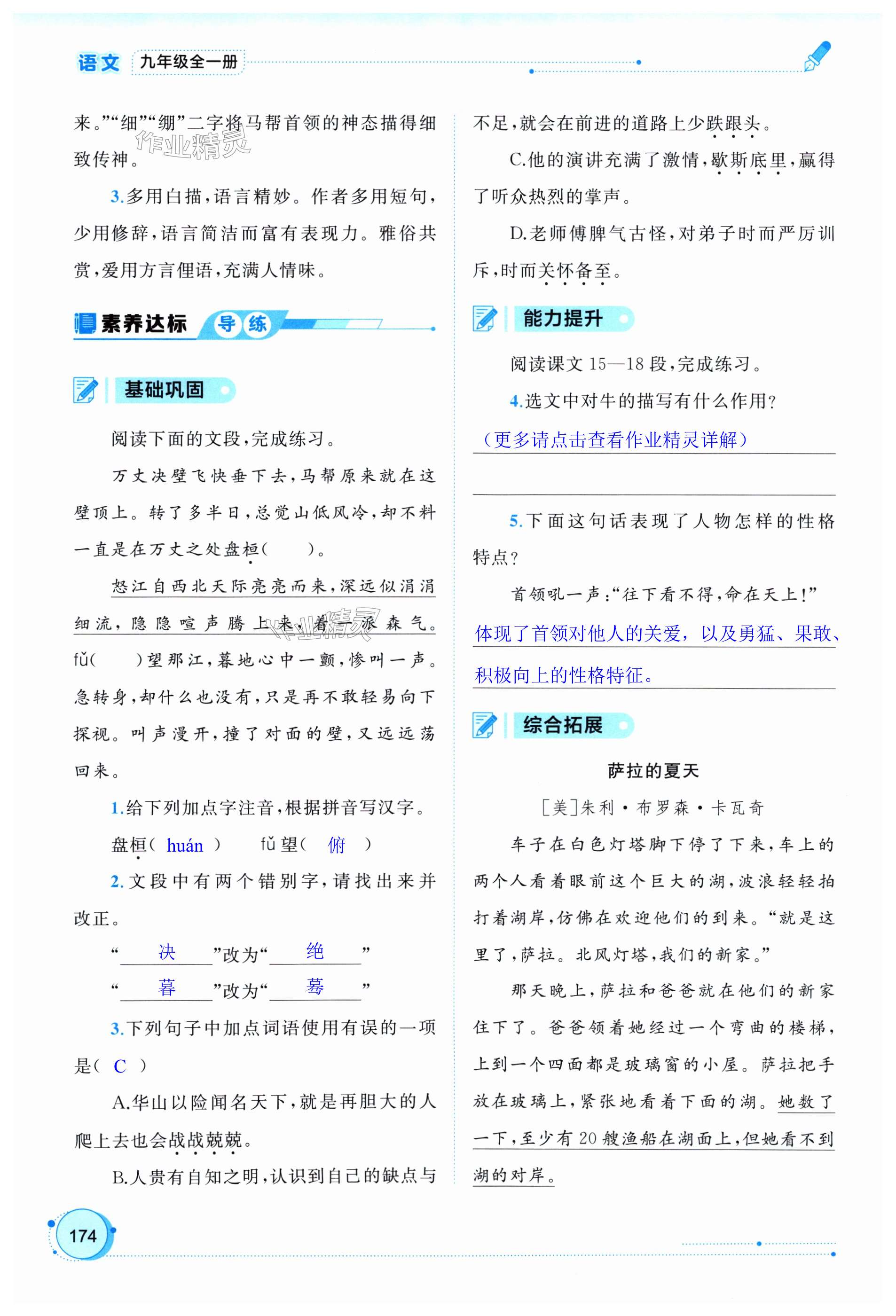 注:目前有些书本章节名称可能整理的还不是很完善,但都是按照顺序排列的,请同学们按照顺序仔细查找。练习册 2024年新课程学习与测评同步学习九年级语文全一册人教版 答案主要是用来给同学们做完题方便对答案用的,请勿直接抄袭。