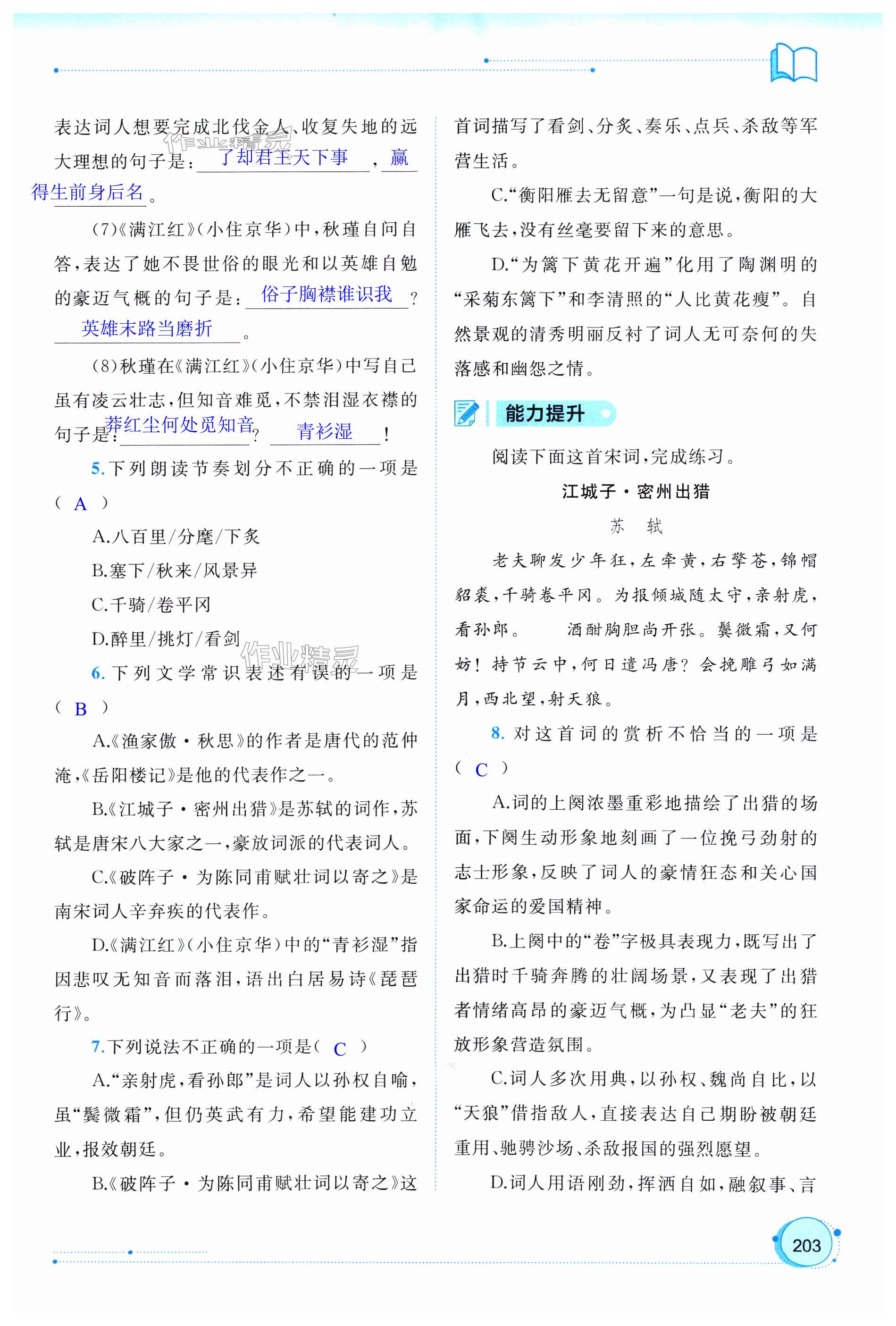 注:目前有些书本章节名称可能整理的还不是很完善,但都是按照顺序排列的,请同学们按照顺序仔细查找。练习册 2024年新课程学习与测评同步学习九年级语文全一册人教版 答案主要是用来给同学们做完题方便对答案用的,请勿直接抄袭。