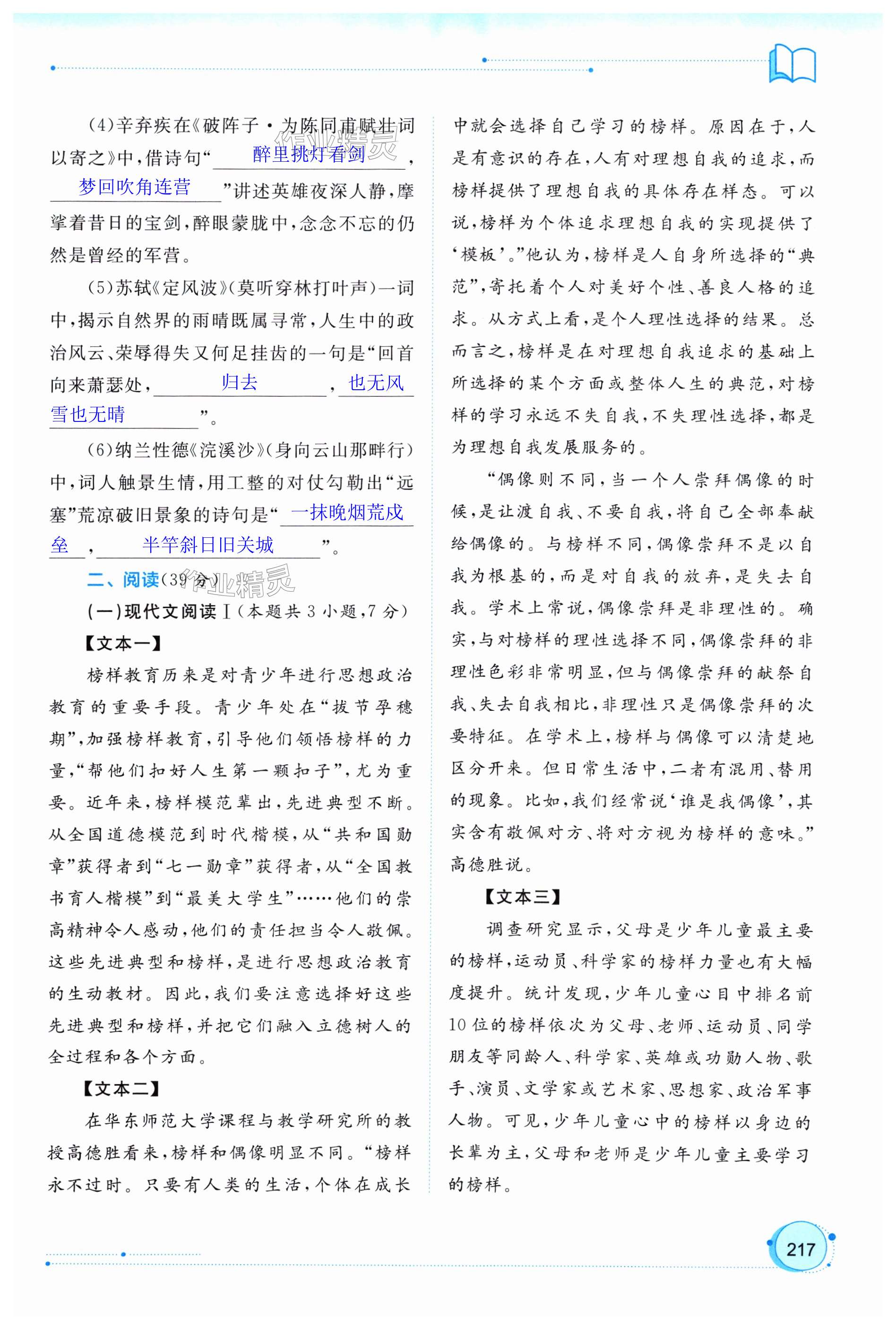 注:目前有些书本章节名称可能整理的还不是很完善,但都是按照顺序排列的,请同学们按照顺序仔细查找。练习册 2024年新课程学习与测评同步学习九年级语文全一册人教版 答案主要是用来给同学们做完题方便对答案用的,请勿直接抄袭。
