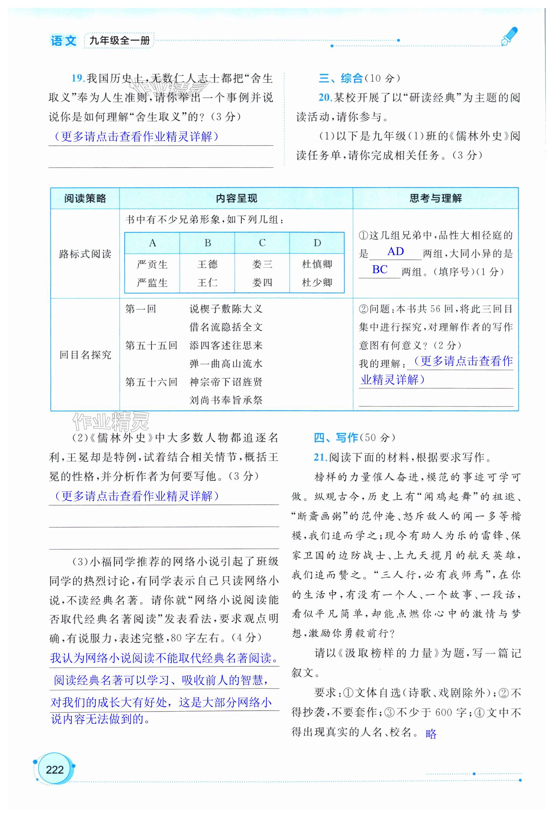 注:目前有些书本章节名称可能整理的还不是很完善,但都是按照顺序排列的,请同学们按照顺序仔细查找。练习册 2024年新课程学习与测评同步学习九年级语文全一册人教版 答案主要是用来给同学们做完题方便对答案用的,请勿直接抄袭。