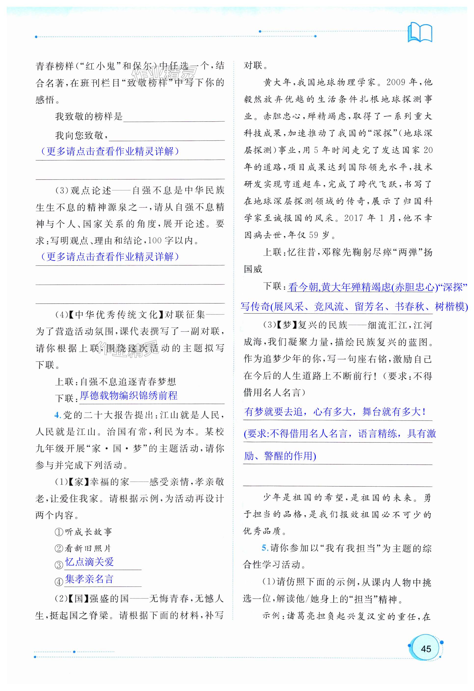 注:目前有些书本章节名称可能整理的还不是很完善,但都是按照顺序排列的,请同学们按照顺序仔细查找。练习册 2024年新课程学习与测评同步学习九年级语文全一册人教版 答案主要是用来给同学们做完题方便对答案用的,请勿直接抄袭。