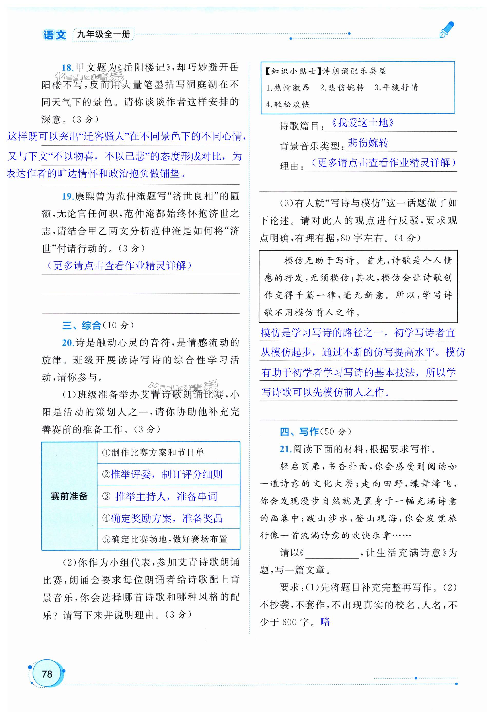 注:目前有些书本章节名称可能整理的还不是很完善,但都是按照顺序排列的,请同学们按照顺序仔细查找。练习册 2024年新课程学习与测评同步学习九年级语文全一册人教版 答案主要是用来给同学们做完题方便对答案用的,请勿直接抄袭。