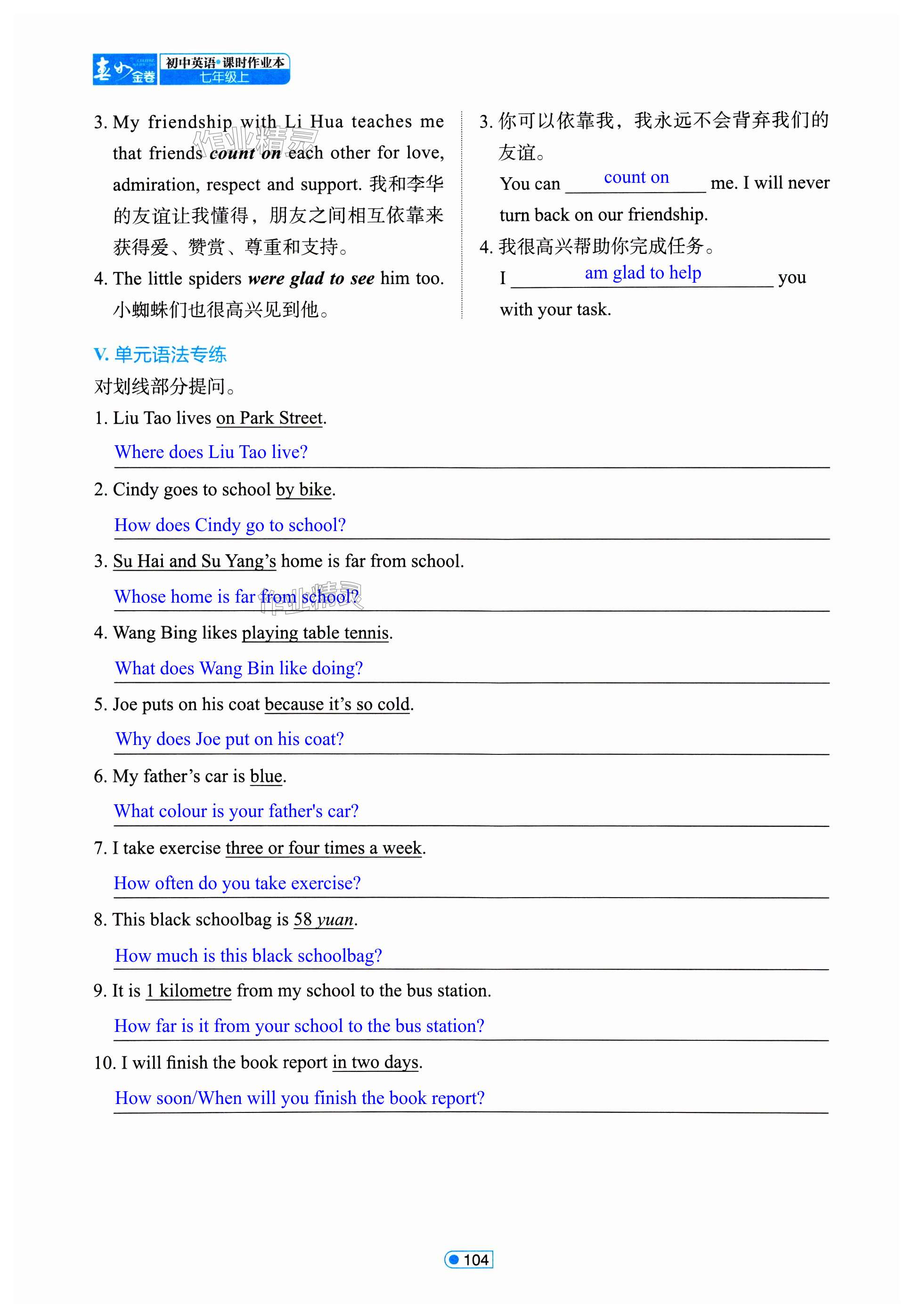注:目前有些书本章节名称可能整理的还不是很完善,但都是按照顺序排列的,请同学们按照顺序仔细查找。练习册 2024年春如金卷课时作业本七年级英语上册沪教版 答案主要是用来给同学们做完题方便对答案用的,请勿直接抄袭。