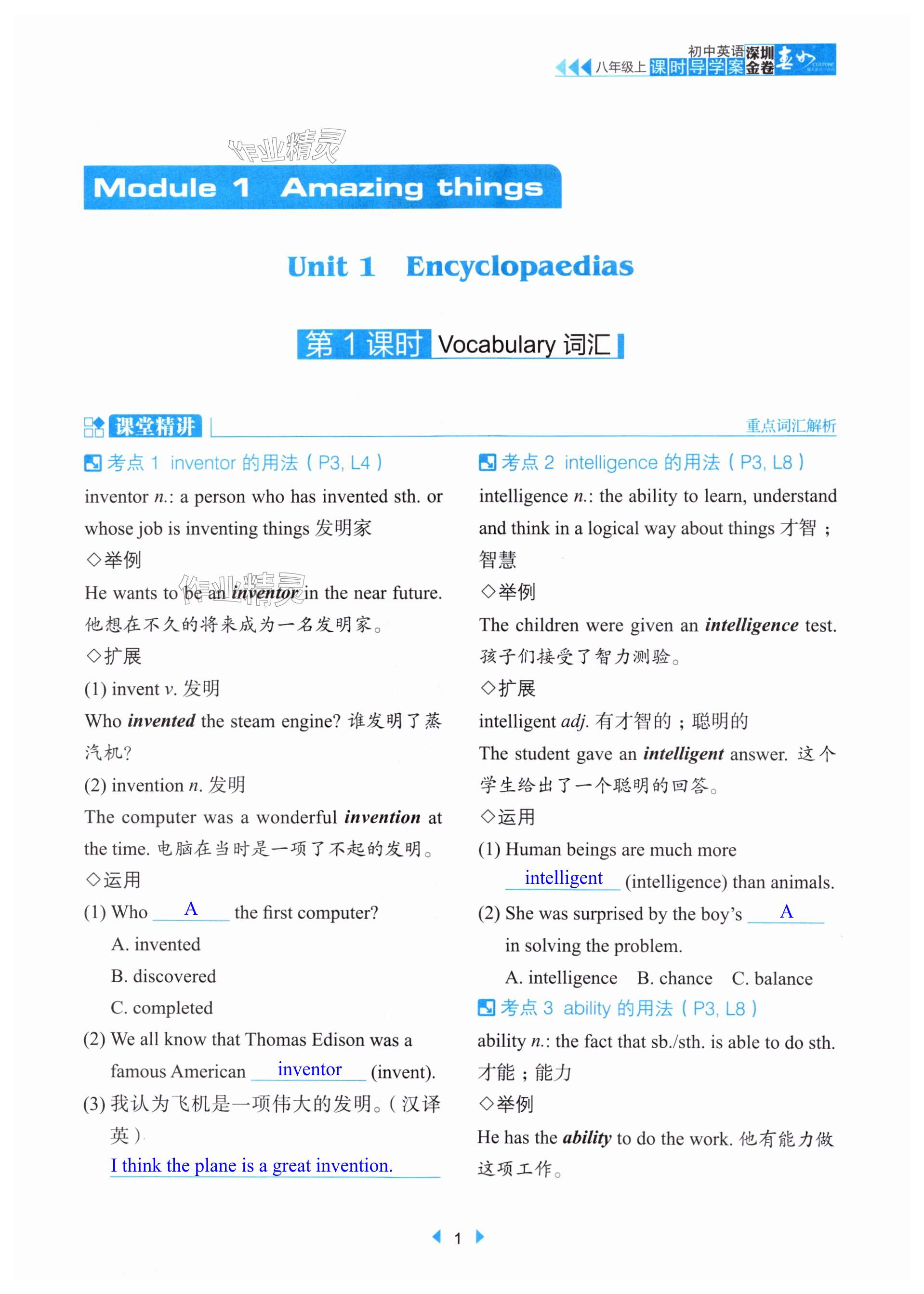 注:目前有些书本章节名称可能整理的还不是很完善,但都是按照顺序排列的,请同学们按照顺序仔细查找。练习册 2024年深圳金卷导学案八年级英语上册沪教版 答案主要是用来给同学们做完题方便对答案用的,请勿直接抄袭。