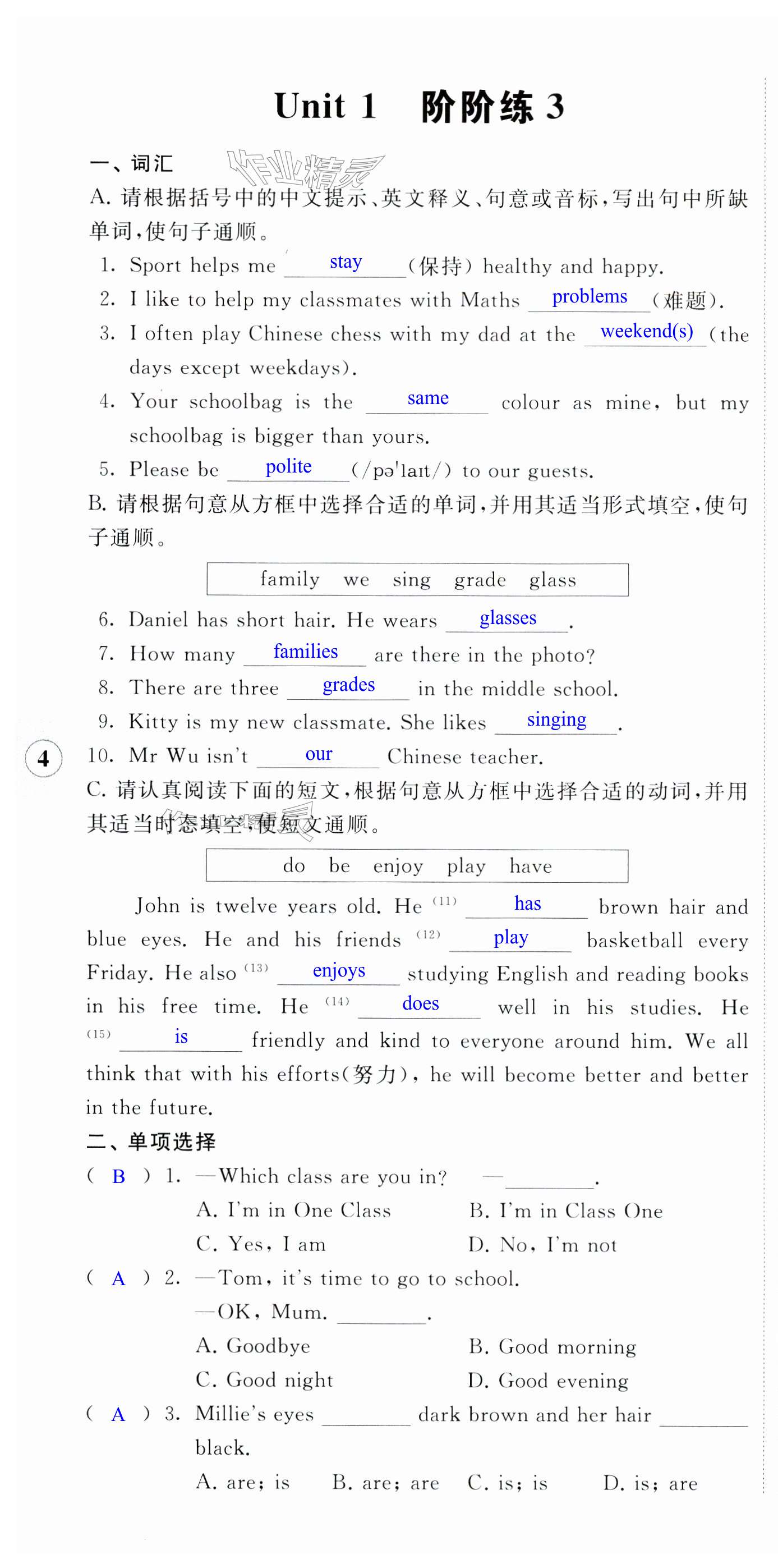 注:目前有些书本章节名称可能整理的还不是很完善,但都是按照顺序排列的,请同学们按照顺序仔细查找。练习册 2024年自我提升与评价七年级英语上册译林版 答案主要是用来给同学们做完题方便对答案用的,请勿直接抄袭。
